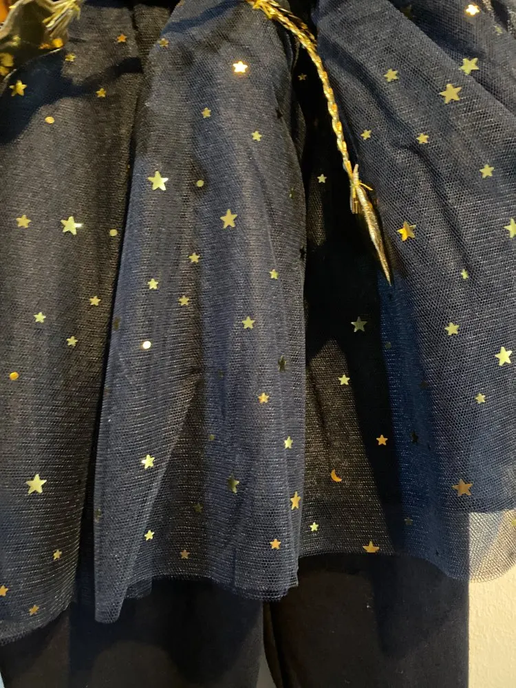 En la parte de atrás del tul le faltan las estrellas, lleva un trozo completamente azul y al lavarla se le están cayendo las estrellas de alrededor