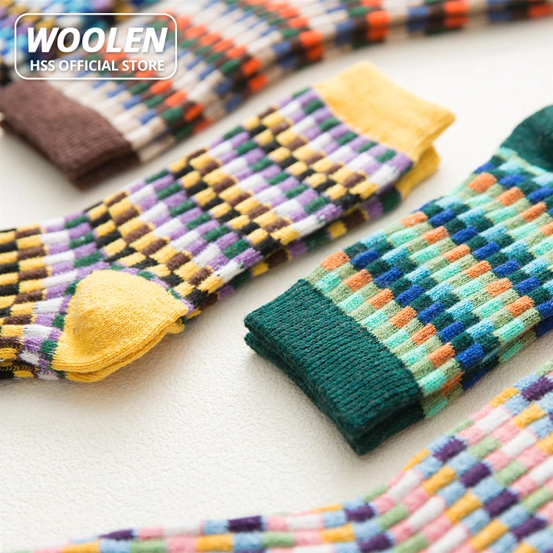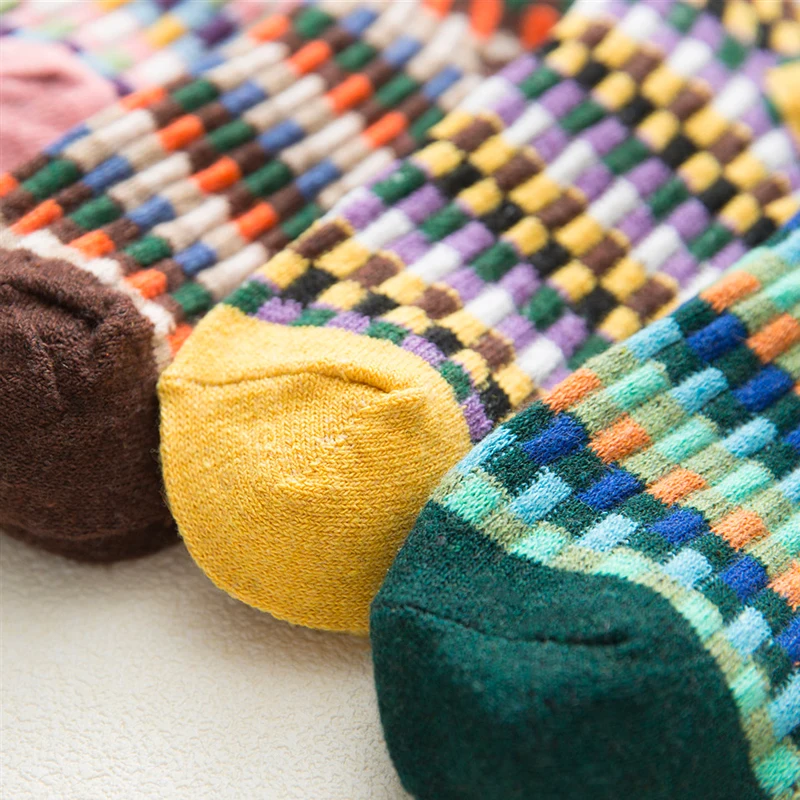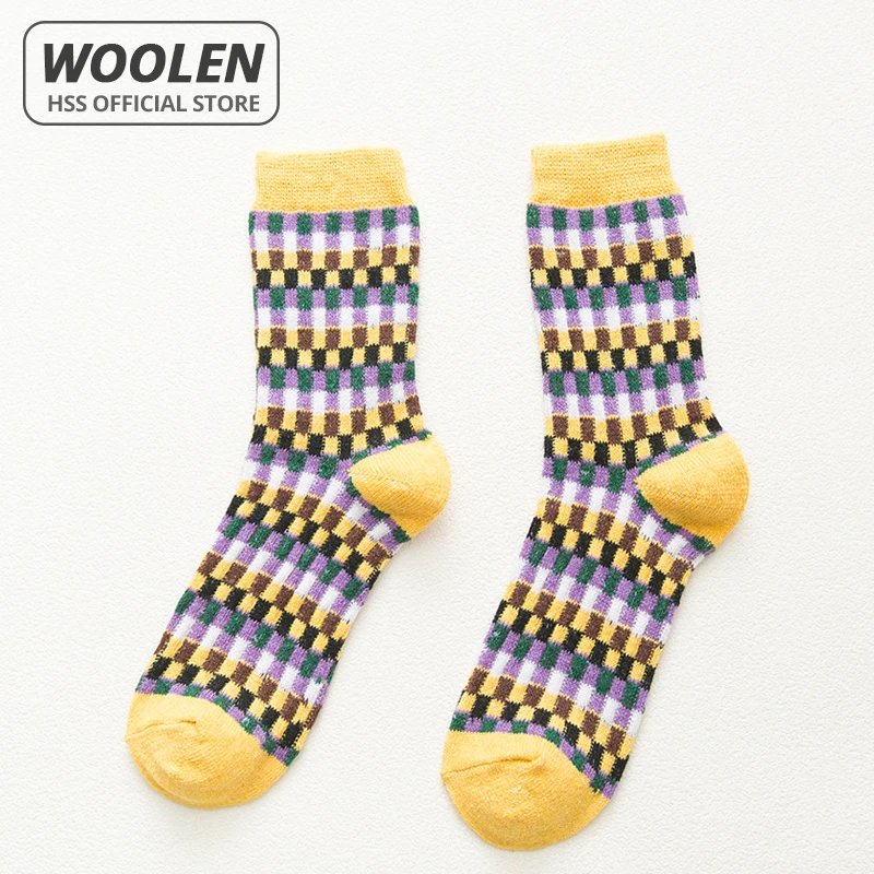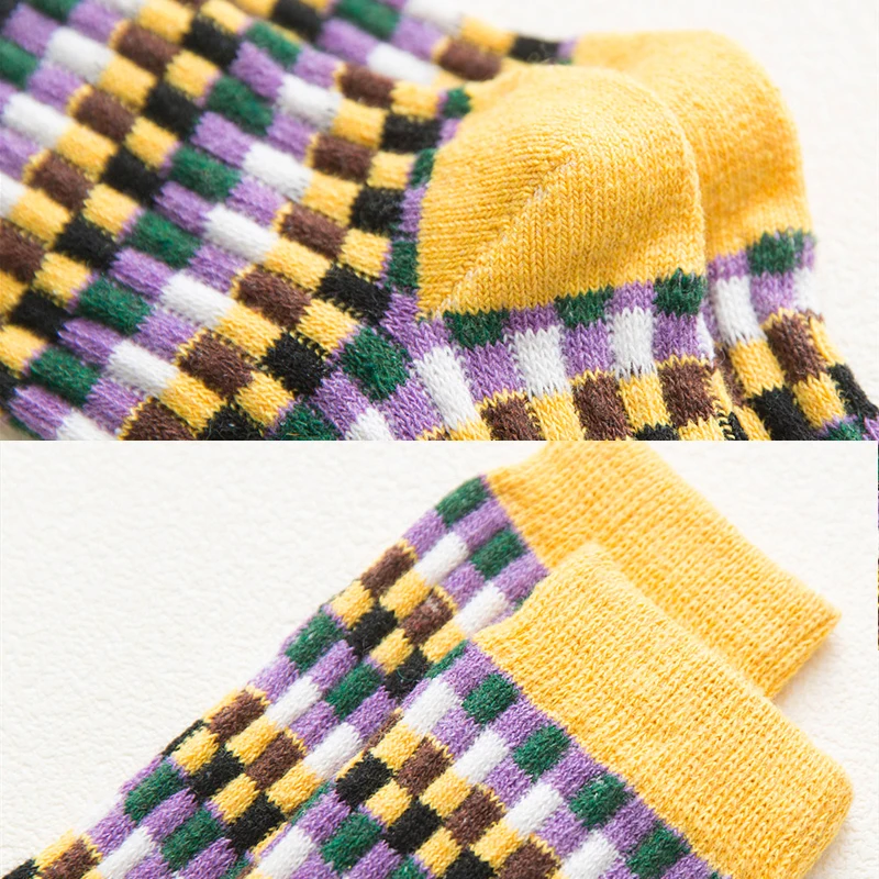Носки женские, из хлопка и шерсти, в полоску, желтого и розового цветов