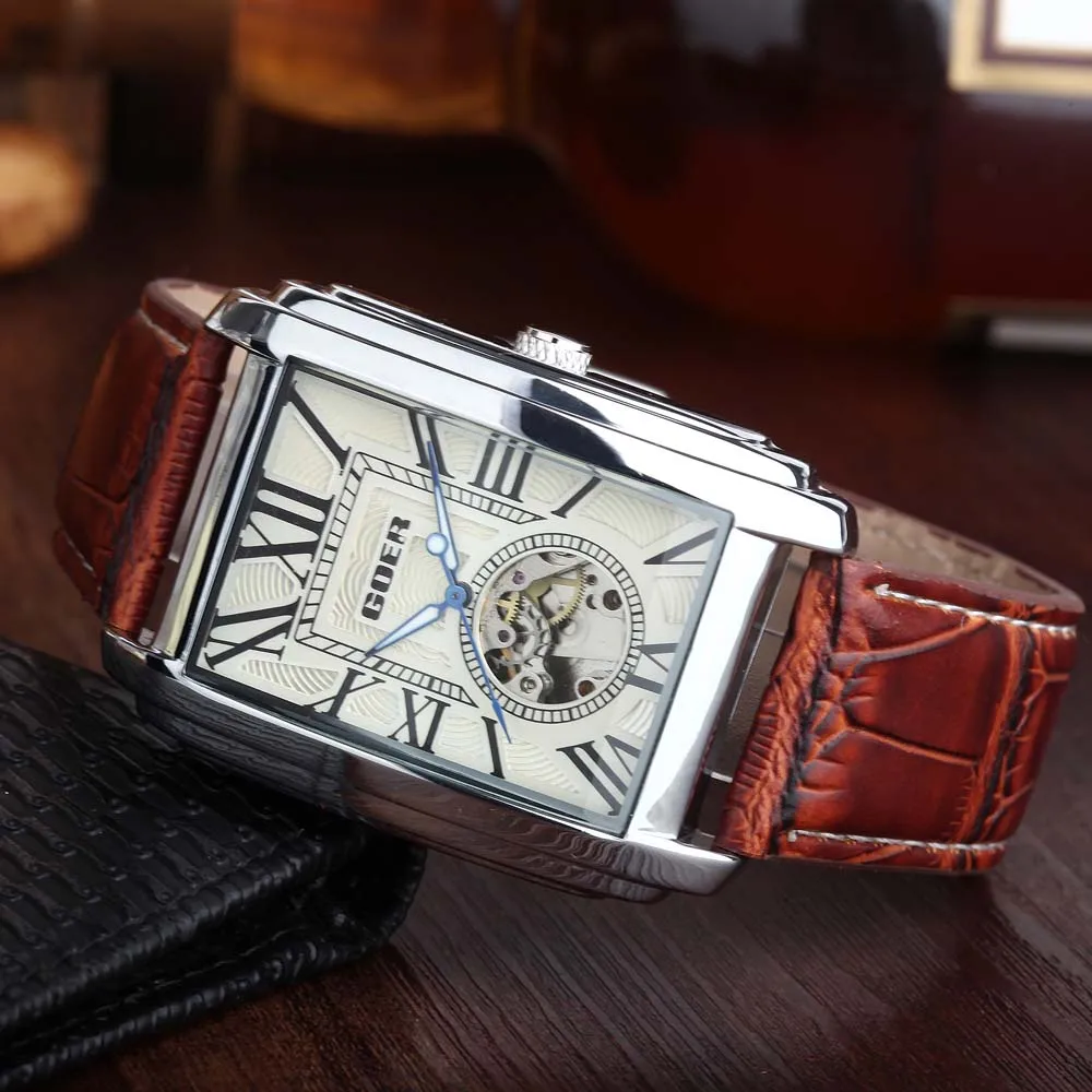 Часы мужские механические с автоподзаводом, Прямоугольный циферблат...
