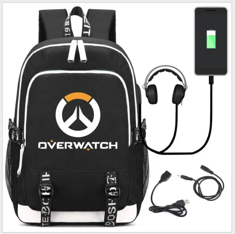 Игры Overwatch школьная сумка для подростка студенческий рюкзак может usb зарядка емкость ноутбук рюкзак для мальчиков девочек