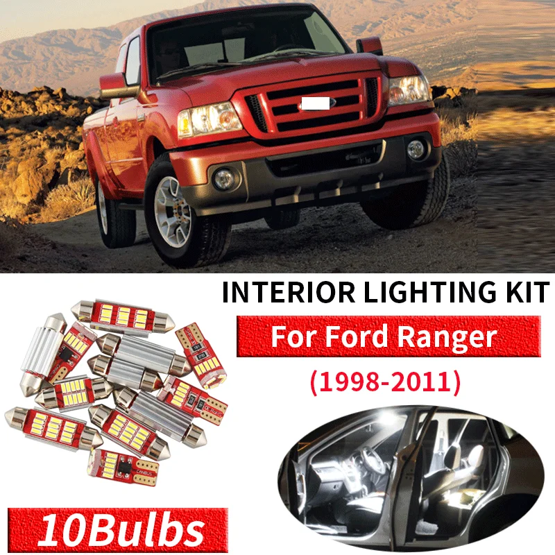 10 шт., светодиодные внутренние фонари для автомобилей Ford Ranger 1998, 1999, 2000, 2001, 2002-2011