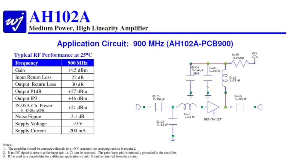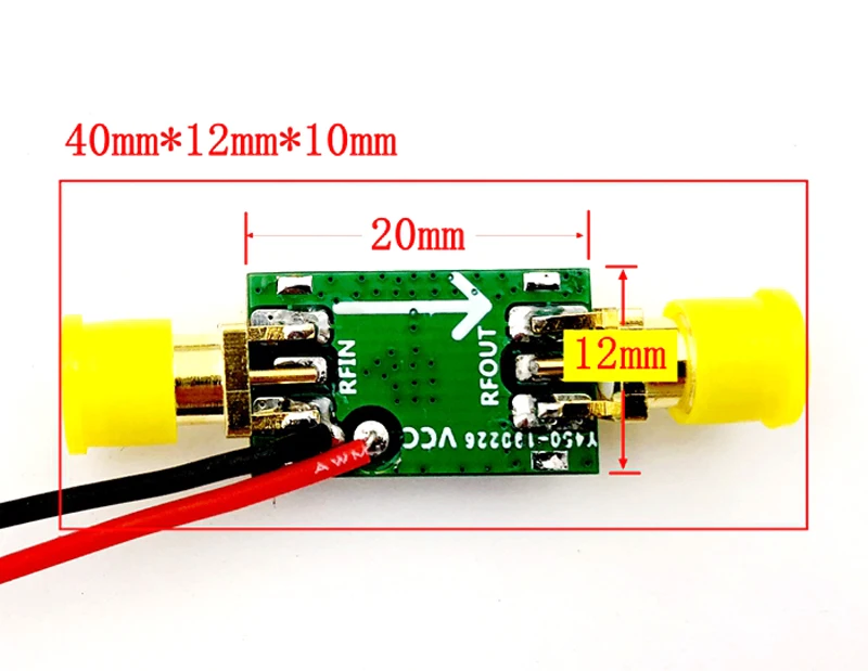 Во-первых, параметры модуля Источник питания: 9 В (200 мА) Коэффициент усиления: 13DB@0.9GHz Размер: Длина * ширина * высота (40 мм * 12 мм * 10 мм) этот размер включен в выступающий SMA интерфейс Длина * ширина * высота (20 мм * 12 мм * 6 мм) не содержит SMA интерфейс Шум: 3,5 дБ @ 900 МГц P1dB = 27dBm @ 900 МГц Рабочая частота: 50-1500 МГц Входное и Выходное сопротивление: 50 Ω