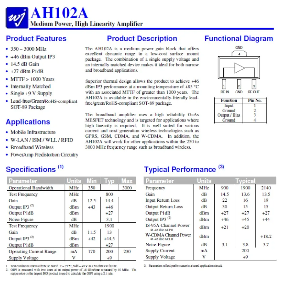 DYKB AH101 50-1500 МГц Средняя мощность Высокая линейность RF усилитель модуль фиксированный коэффициент усиления 14 дБ один 27dBmfor LAN Ham Радио широкополосный