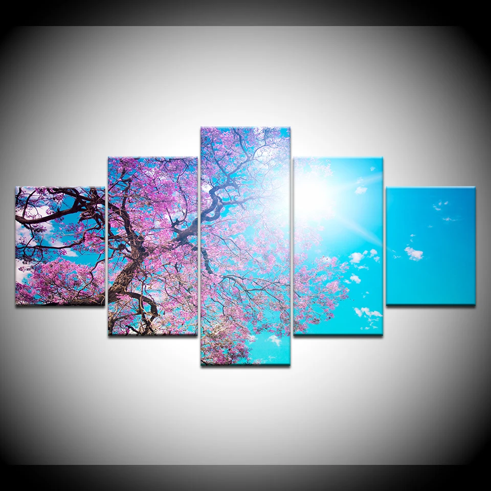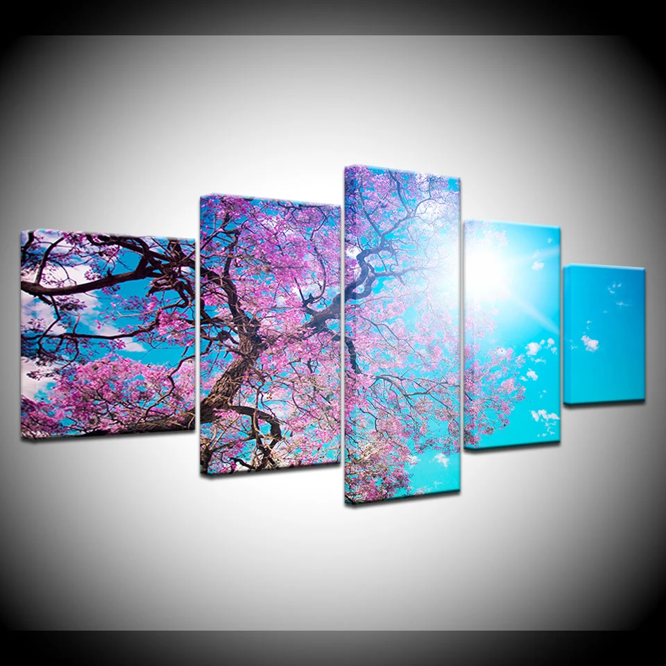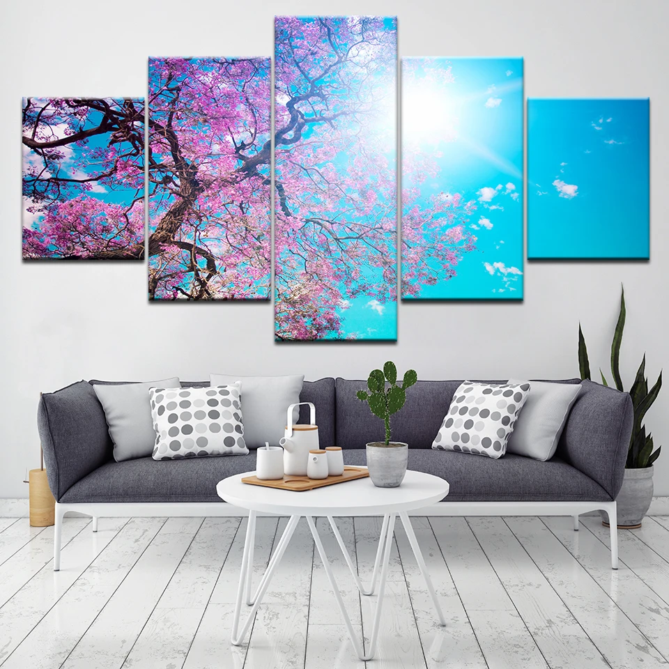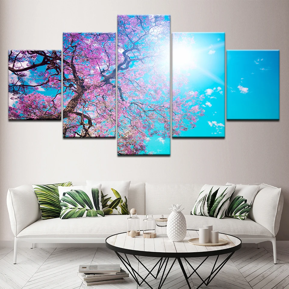 5 шт., скандинавские красивые блики, вишневые деревья, цветы, картина маслом, холст, настенное искусство, принт, украшение дома, модульная живопись