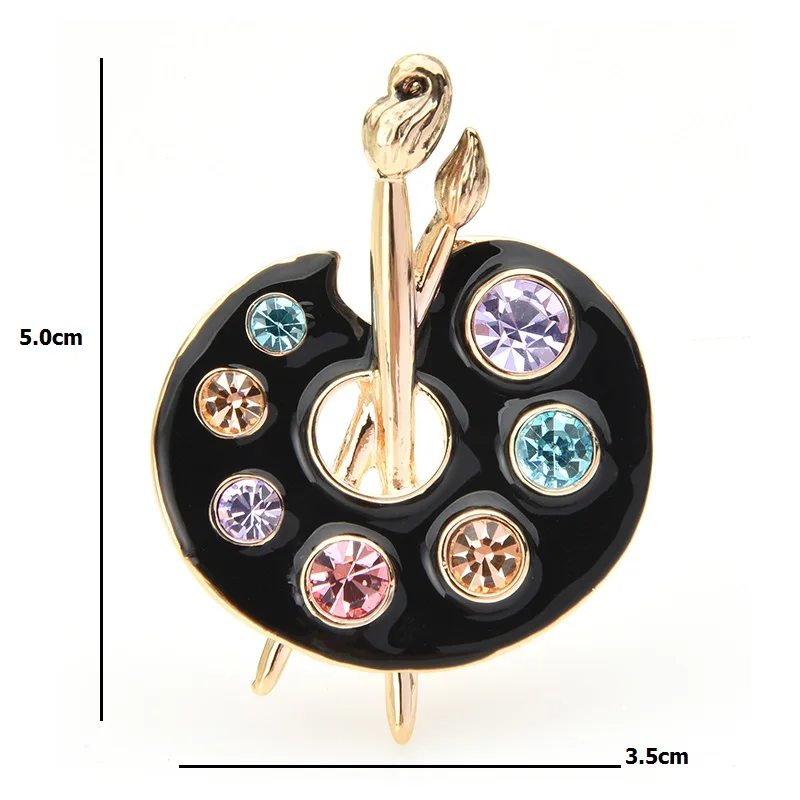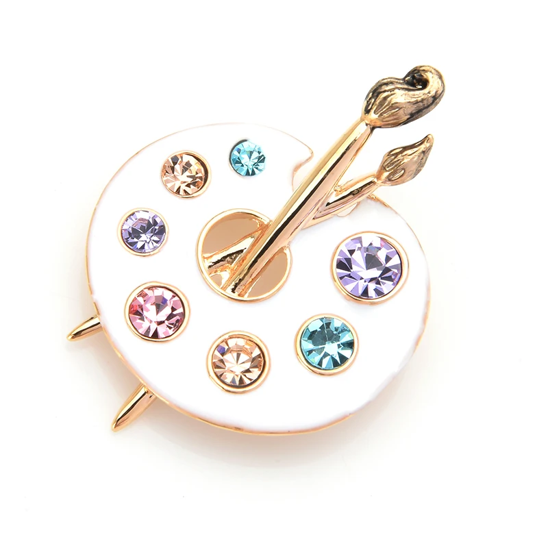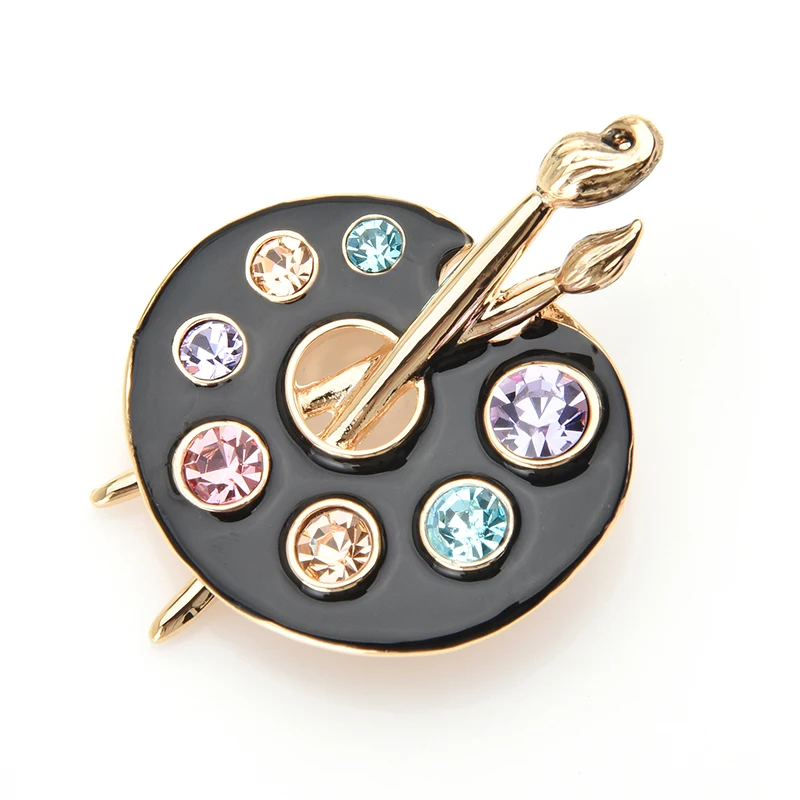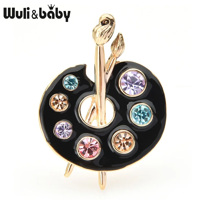 МужскаяЖенская Брошь Wuli baby, эмалированная брошь в форме палитры, 2 цвета, с кристаллами, черно-белая, Подарочная брошь для влюбленных