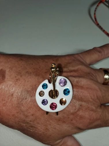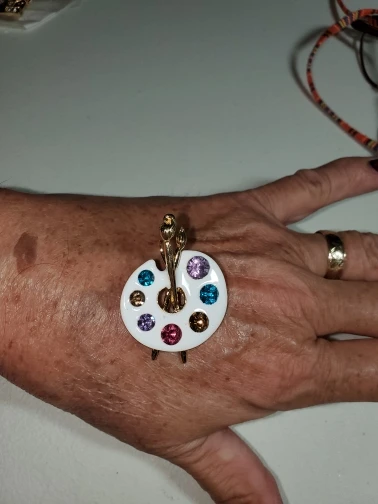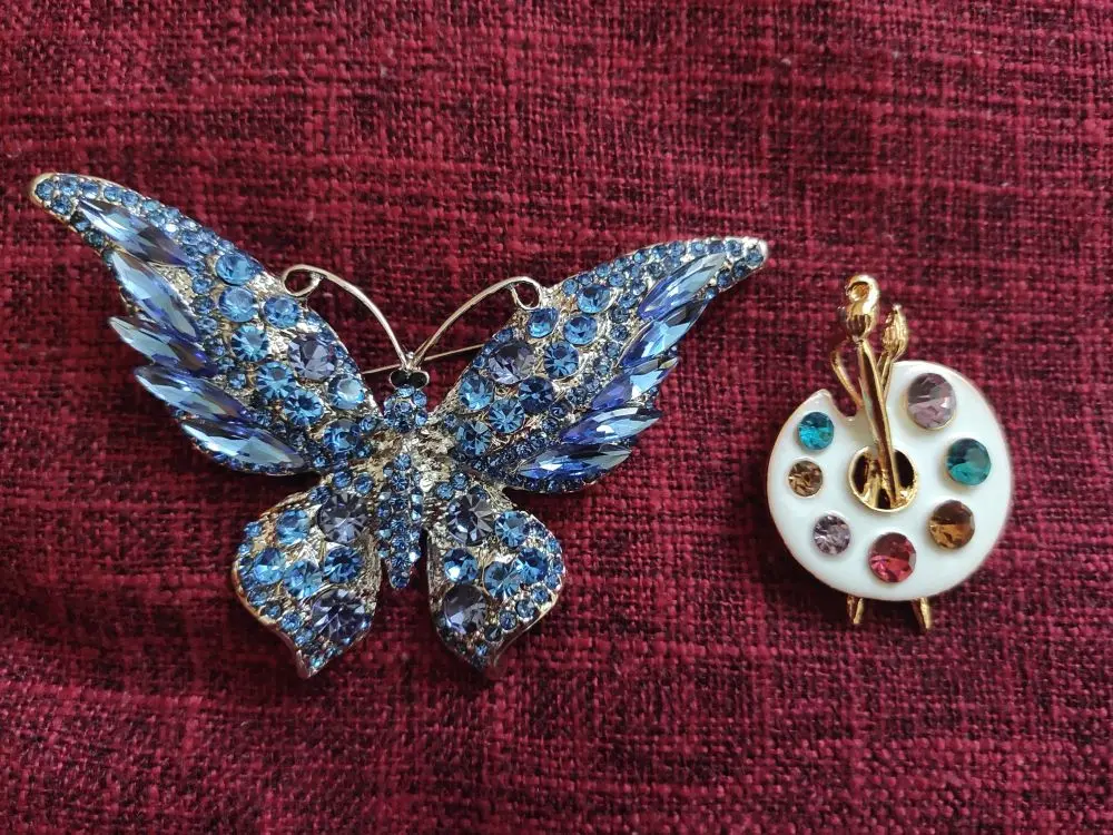 Брошь краски ,сама по себе хороша, только приклеены стразы неаккуратно,видно клей!