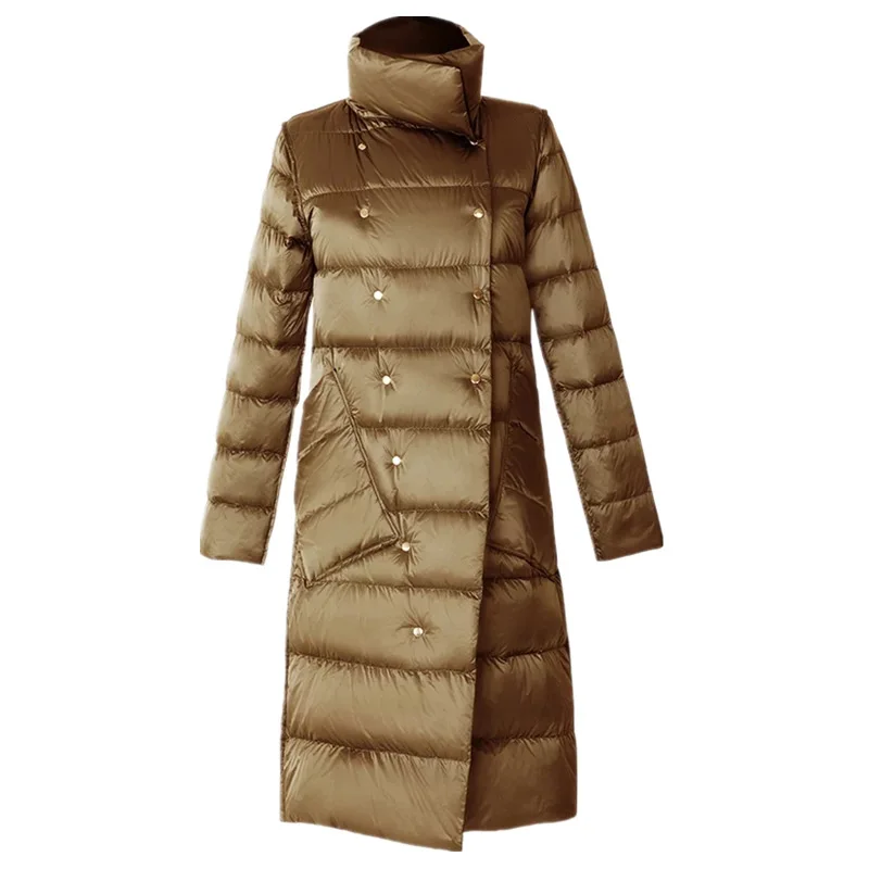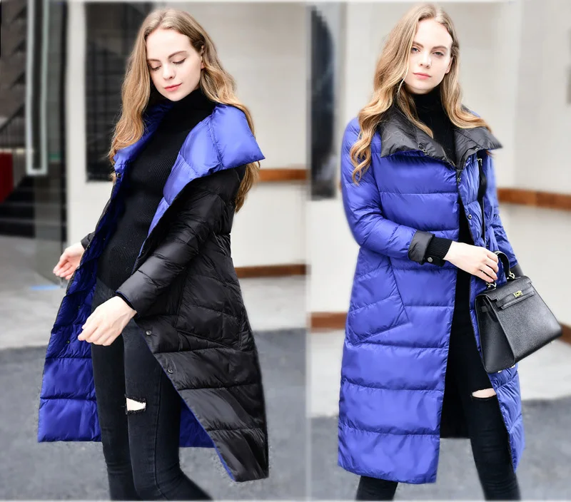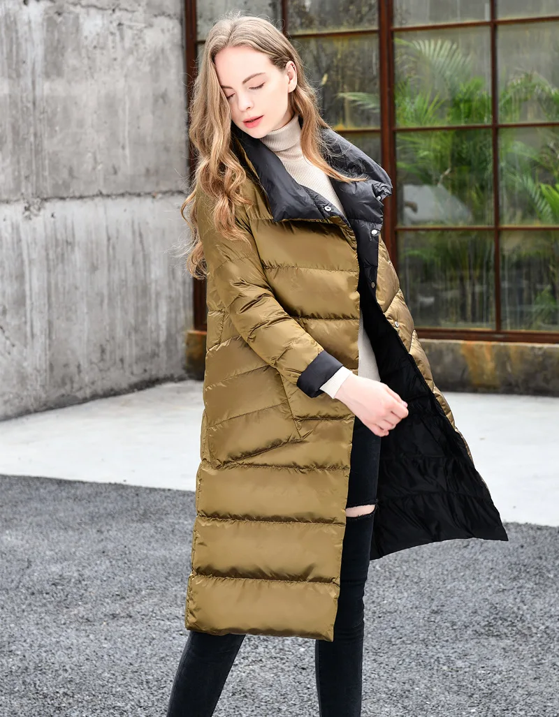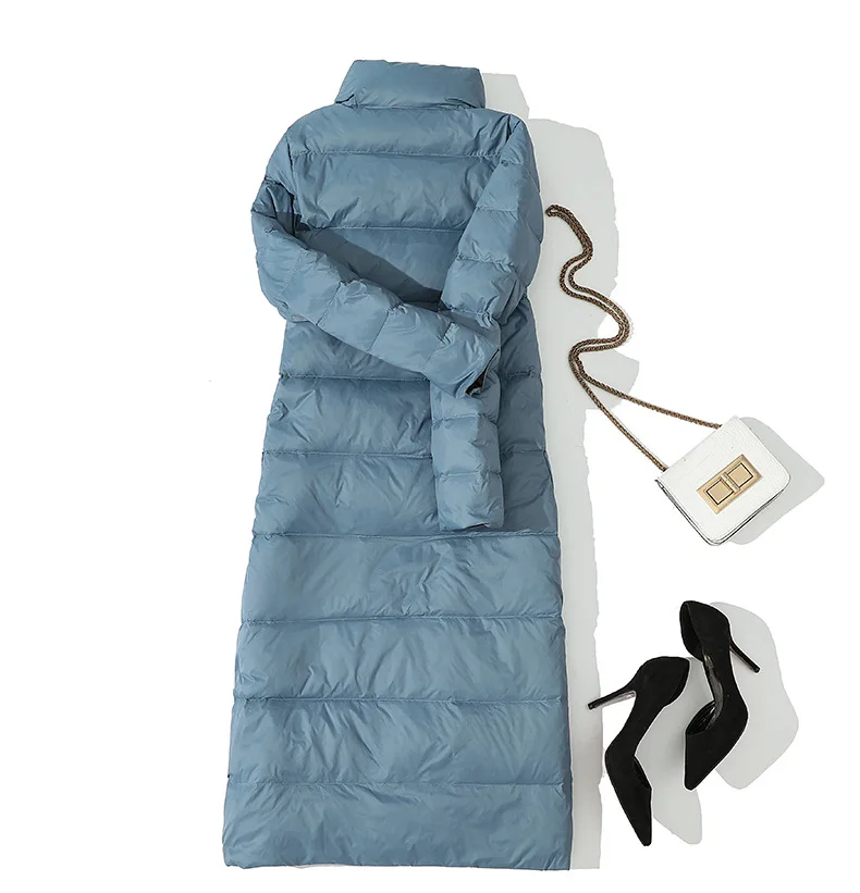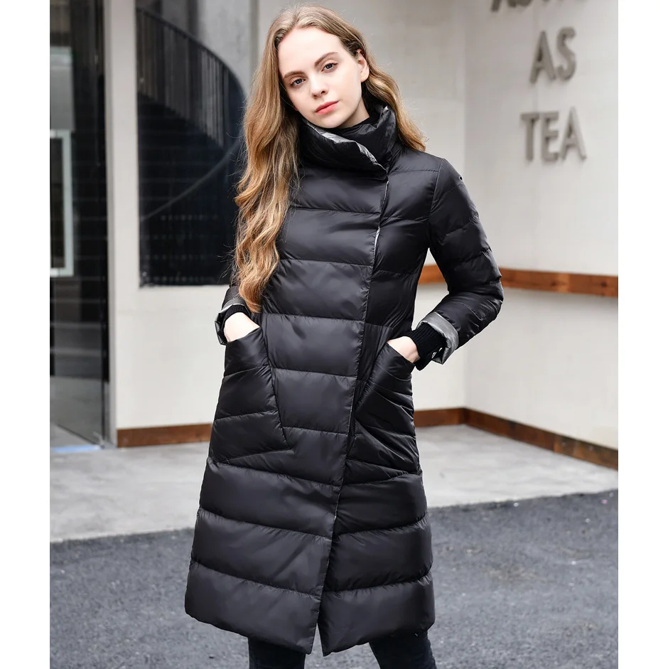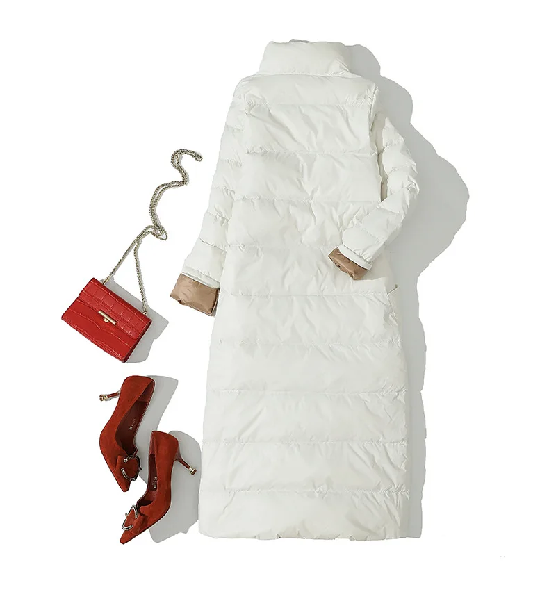 Женское пальто с воротником-стойкой, на белом утином пуху, легкое, длинное, зимнее, 2021