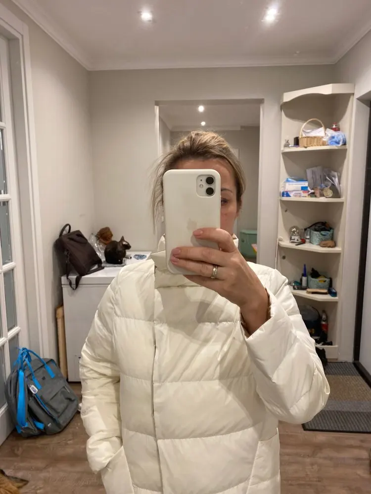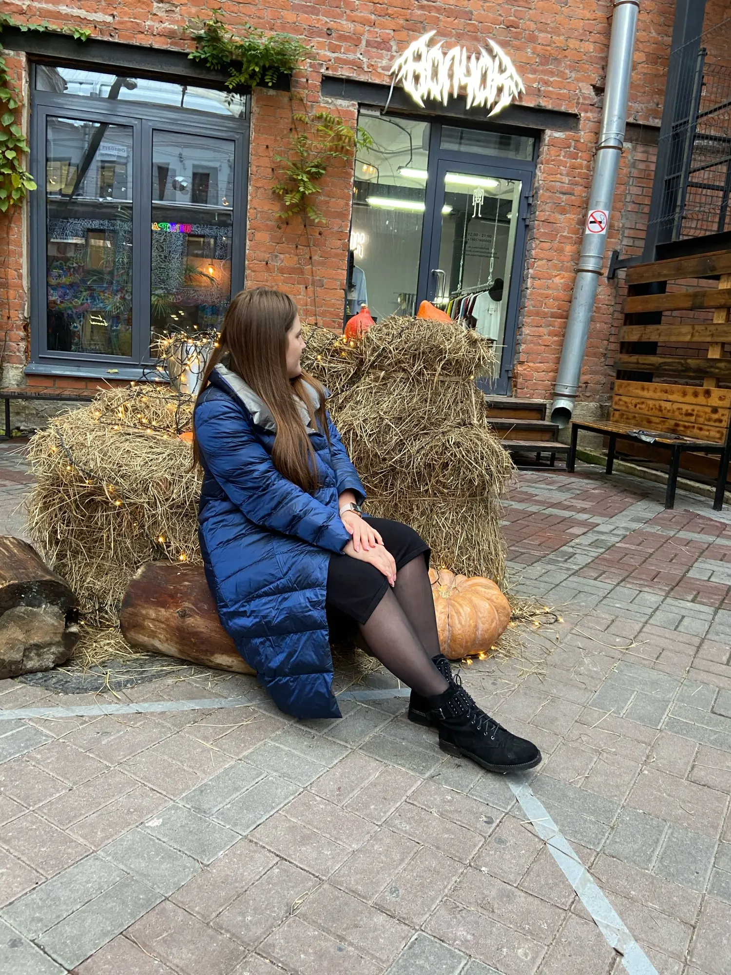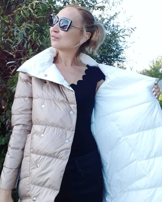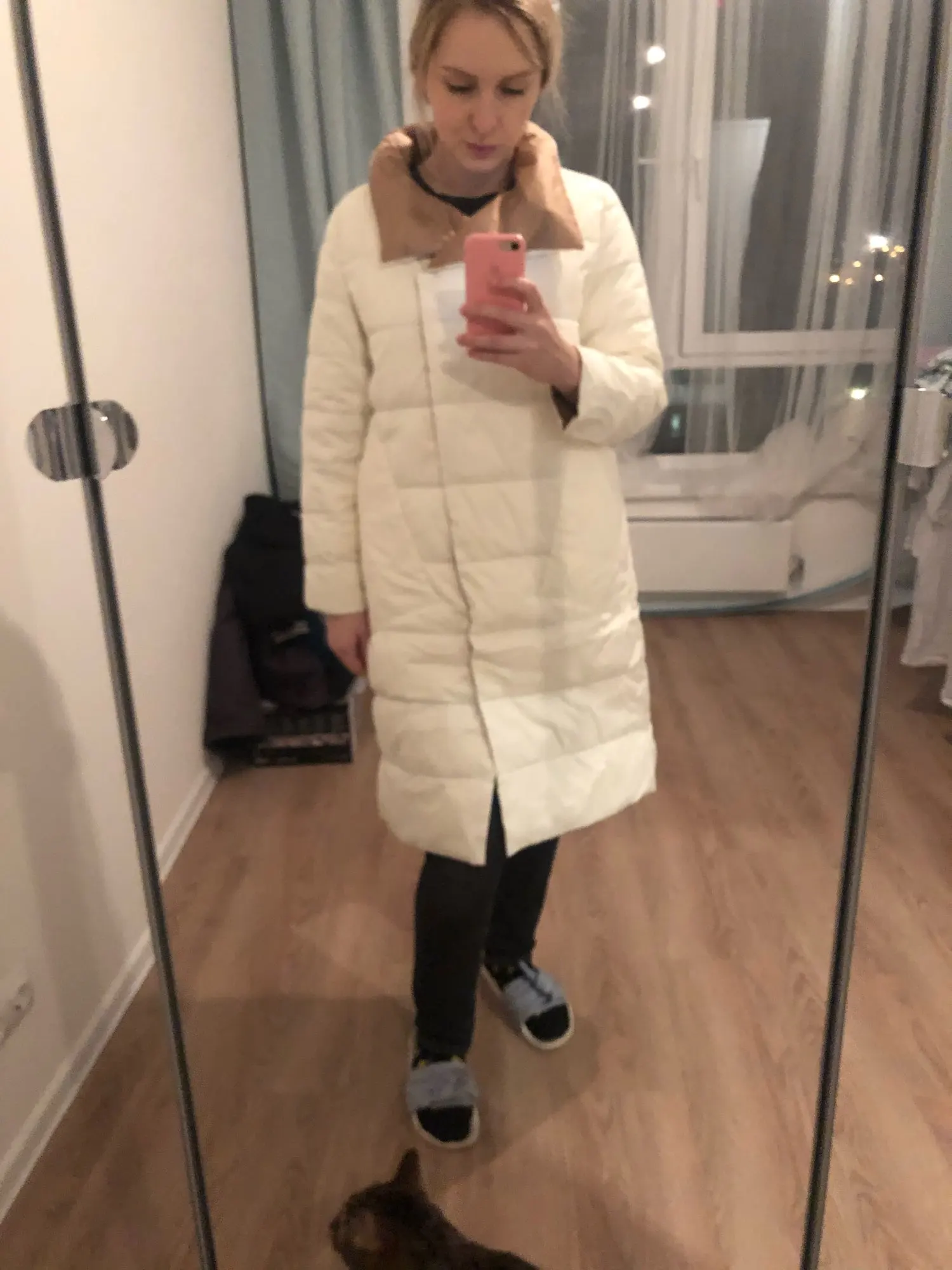 немного не попала в размер, получился оверсайз, но пуховик клевый! не на зиму, конечно, но я очень довольна
