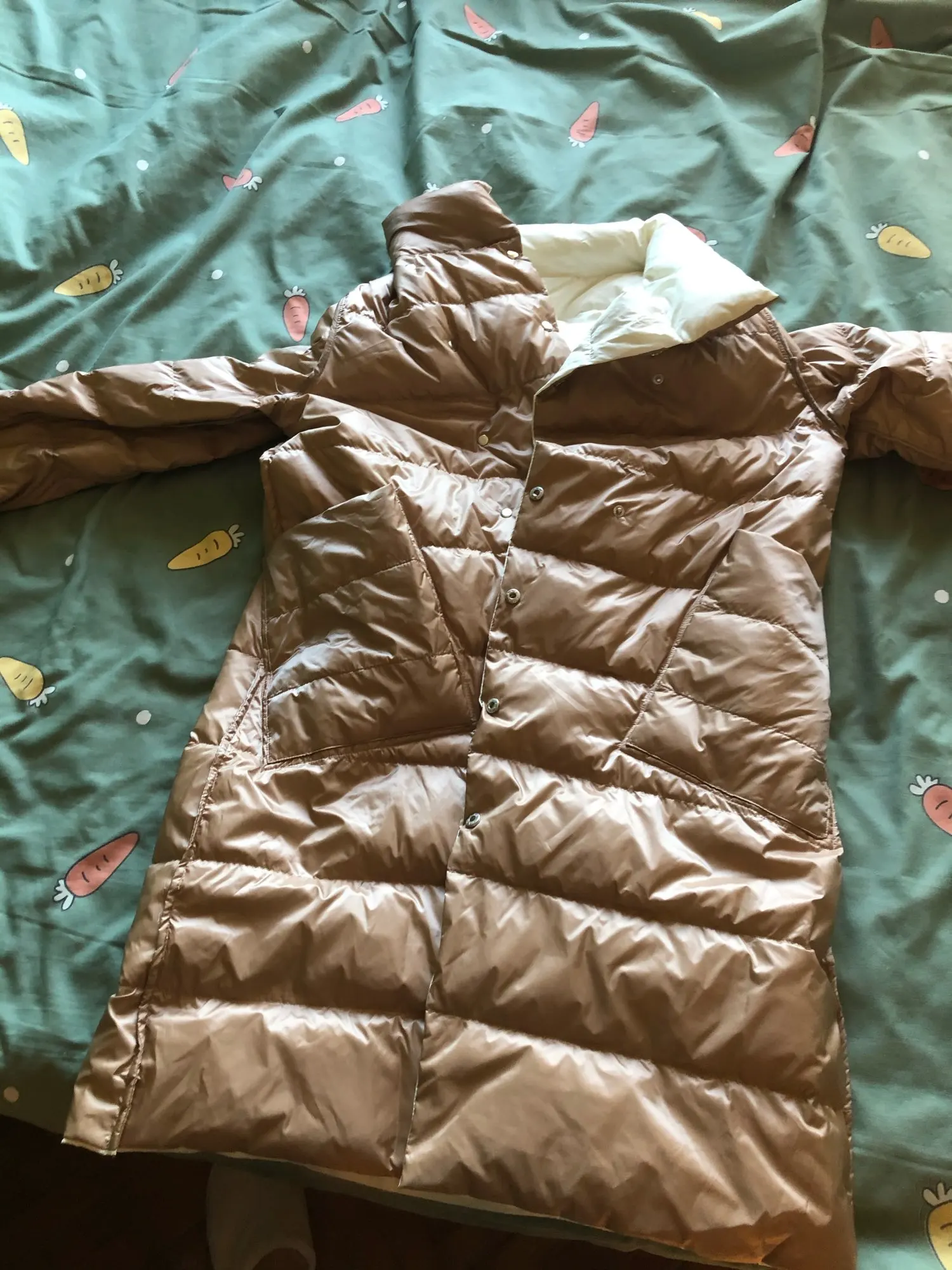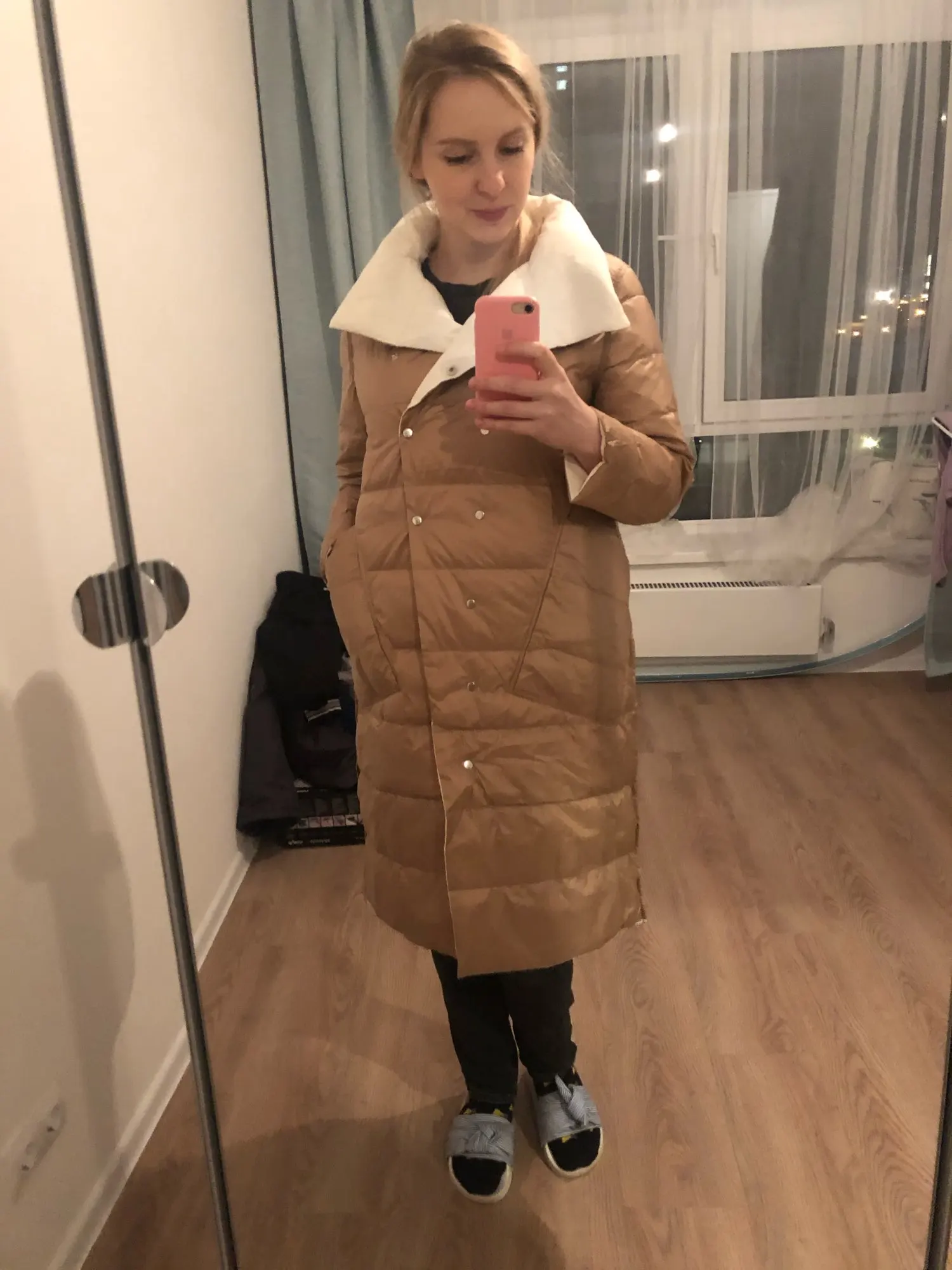 Длинные куртки являются важной частью базового осеннего гардероба, поскольку выглядят весьма достойно, а также способны согреть в холодное время года. На выбор представлено 9 цветов. Каждая куртка двухцветная, двусторонняя, а это значит, что носить ее можно по разному. Наполнитель - натуральный гусиный пух. Пуховик лёгкий, идеален при транспортировки, теплый уютный, мягкий как одеяло. Размерная сетка широкая. На параметры 90/64/90 я выбрала размер М. Пальто село отлично. При моем росте 170 длина пуховиков до икры, но вот длина рукава меня не устроила. Такой пуховик идеален для девушек более низкого роста. Пуховик имеет 2 просторных вместительных кармана с каждой стороны, фурнитура выполнена достойно. Доставка две недели.