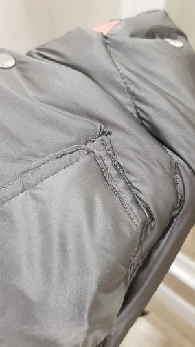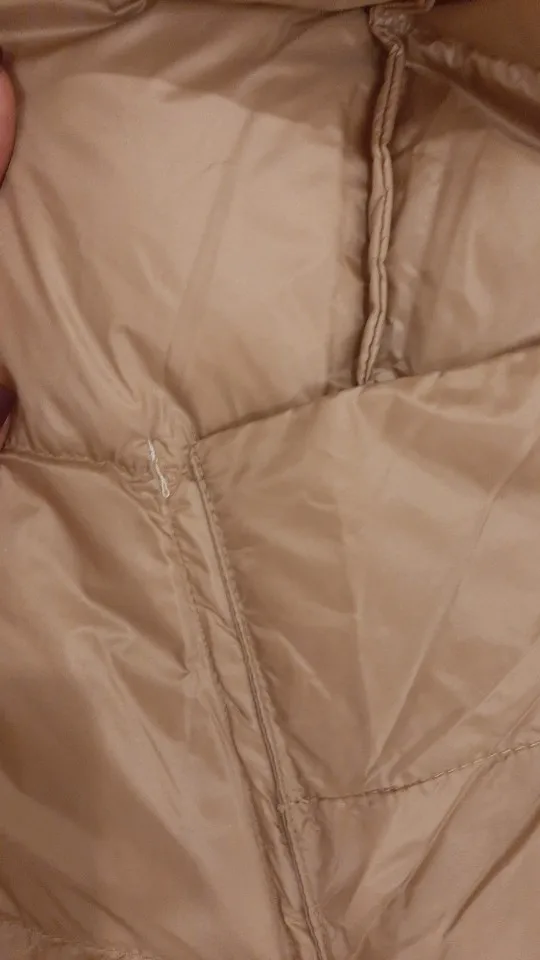 Пуховик пришёл быстро, за две недели до Н.Новгорода. Качество неплохое, немного торчали нитки. На свой 46й размер заказала XL, подошло, но рукава хотелось бы подлиннее см на два, мой рост 170 см. С изнаночной стороны выглядит хуже, видны кнопки и швы, хоть и декоративные.