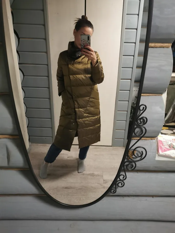 Пуховик бомба, я с него не вылазию. Размер подошёл идеально, на мой рост 156, длина смотрится хорошо. Ношу как со спортивным стилем, так и с классикой.