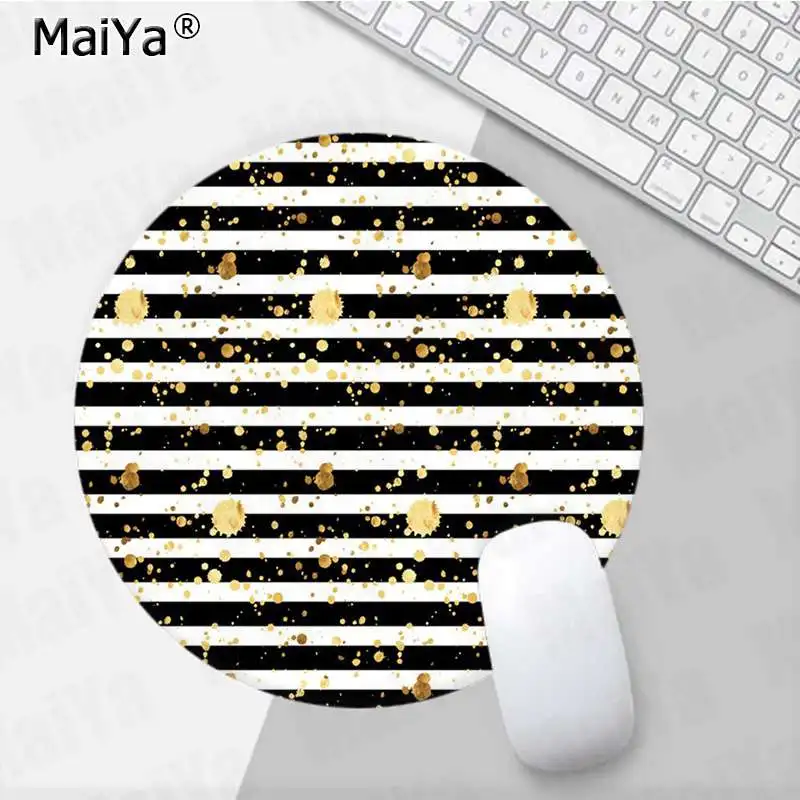 MaiYa плавающие точки черный и золотой на белом силиконовом круглом коврике для мыши игровой коврик для мыши для ноутбука ПК коврик для мышки игровой коврик для мыши
