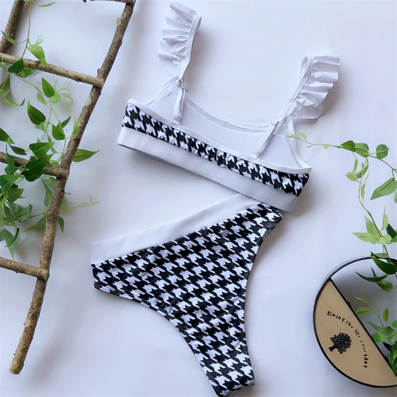 Женский раздельный купальник GNIM, бикини с высокой талией и оборками, пикантный Бразильский бикини с чашками пуш-ап, пляжная одежда, 2019