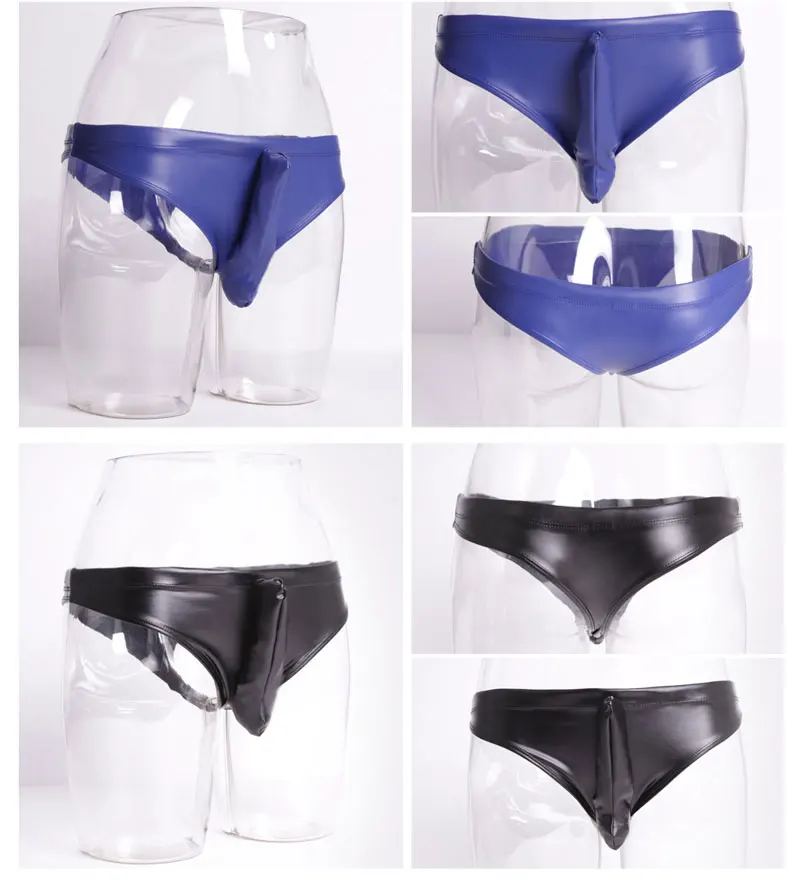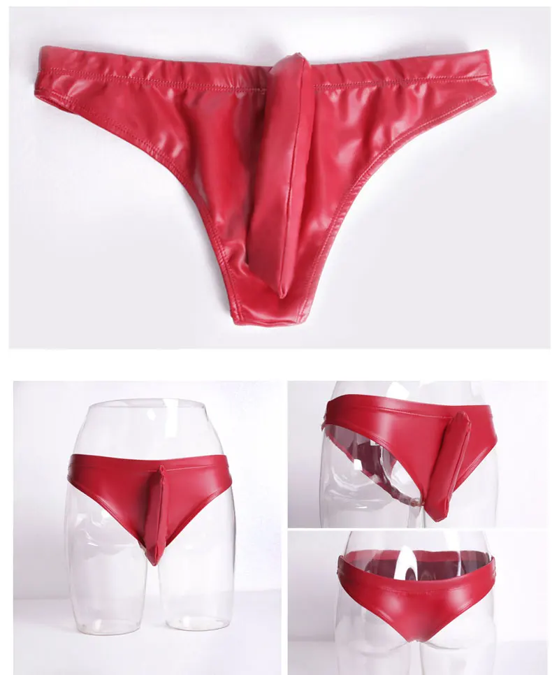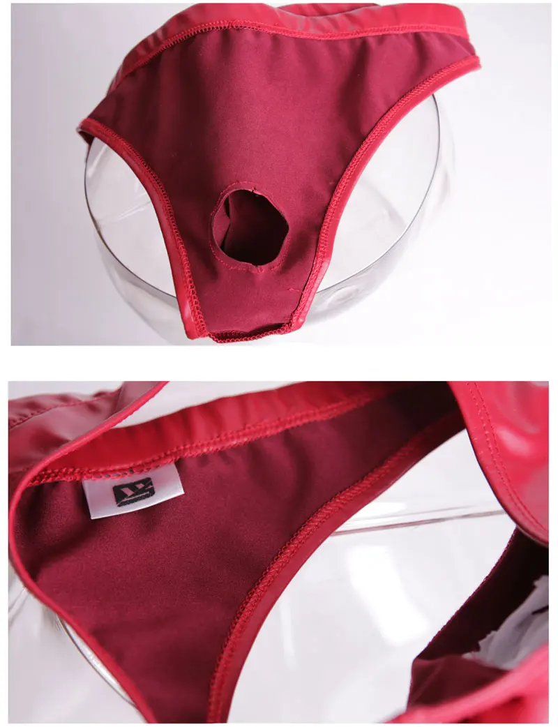 ПУ латекса трусы с заниженной талией трусики сексуальный Для мужчин с отделением для пениса, Эротическое нижнее белье, Сисси кольца дял пениса Homme мини гей трусы размера плюс
