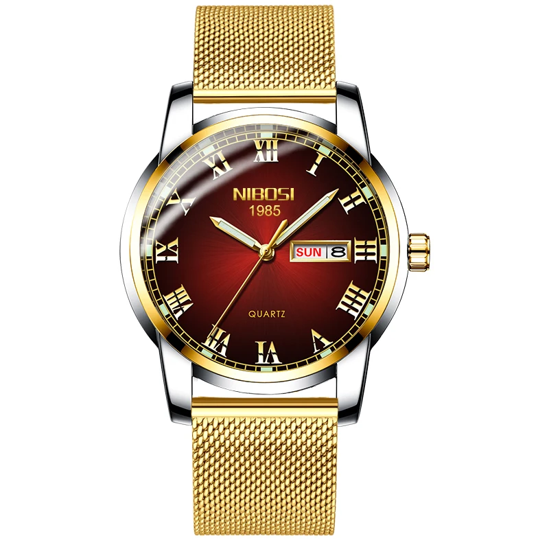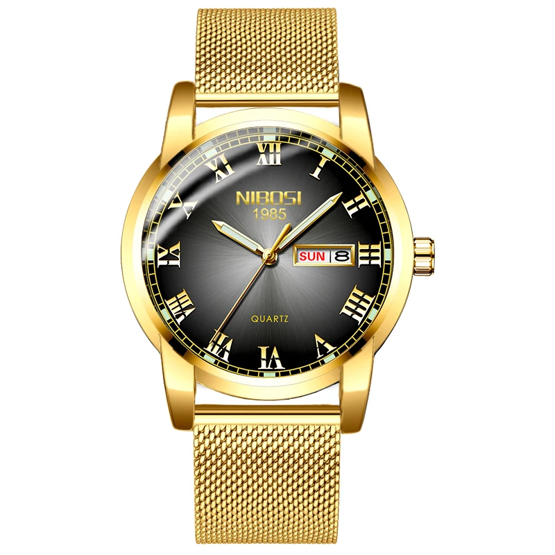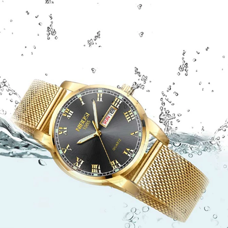 Мужские часы NIBOSI, золотые водонепроницаемые кварцевые часы из не...