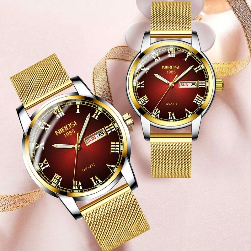Часы наручные NIBOSI для влюбленных, брендовые роскошные золотистые...