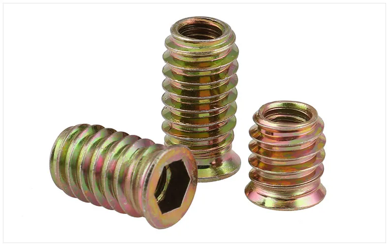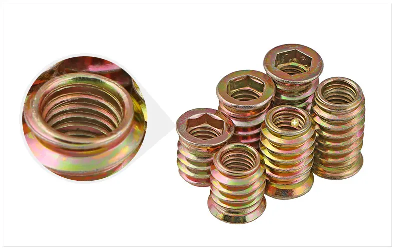 1. Идеальная древесина гайка с кольцевой вставкой: резьбовые вставки для дерева используются для предварительно встроенных разъемов для деревянной мебели. Стандартная Шестигранная головка, гладкая и плоская, имеет текстуру фланцевой резьбы, стабильную структуру и легкую установку.