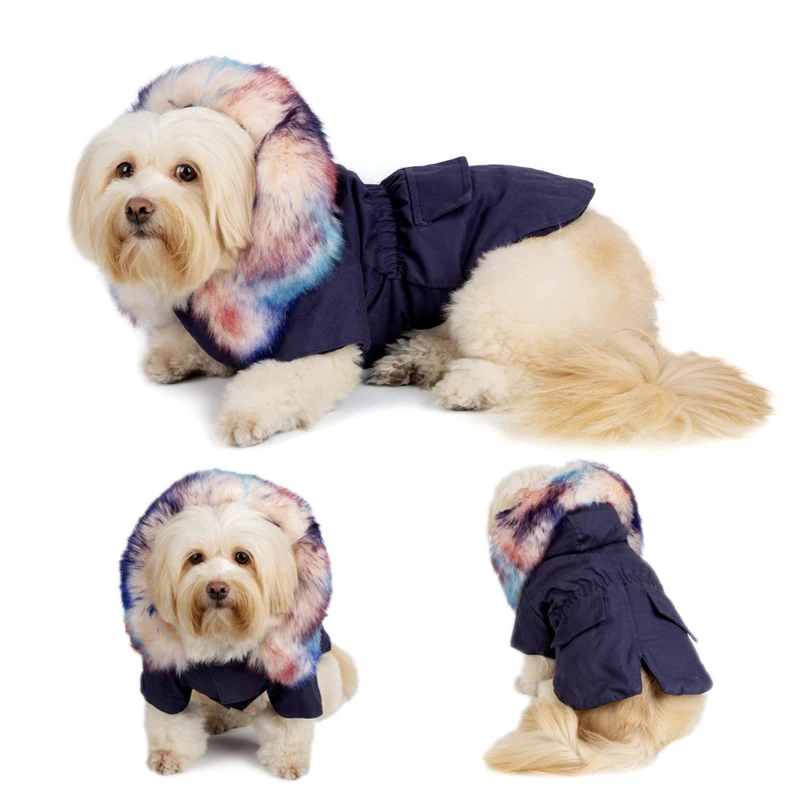 Зимняя одежда для собак, роскошный пушистый меховой воротник, собачья куртка, стильная куртка для собаки с большим съемным меховым воротником с капюшоном, пальто для маленькой собаки