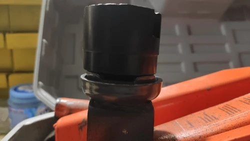 Хорошо, без подгонки опора подошла на чашку домкрата Kraft грузоподъёмностью 2.5 тонны. Глубина порези под нижний стык панелей порога около 15мм. В моем случае (Toyota Ipsum 2000 год), при установке на место опоры, без нагрузки зазор получился всего 1-2 мм. Получается, что когда буду поднимать, нижняя кромка порога всё равно будет упираться в резину. А я хотел этого избежать.