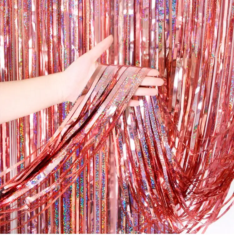 Металлическая Блестки из фольги занавеска с бахромой, свадебное укр...