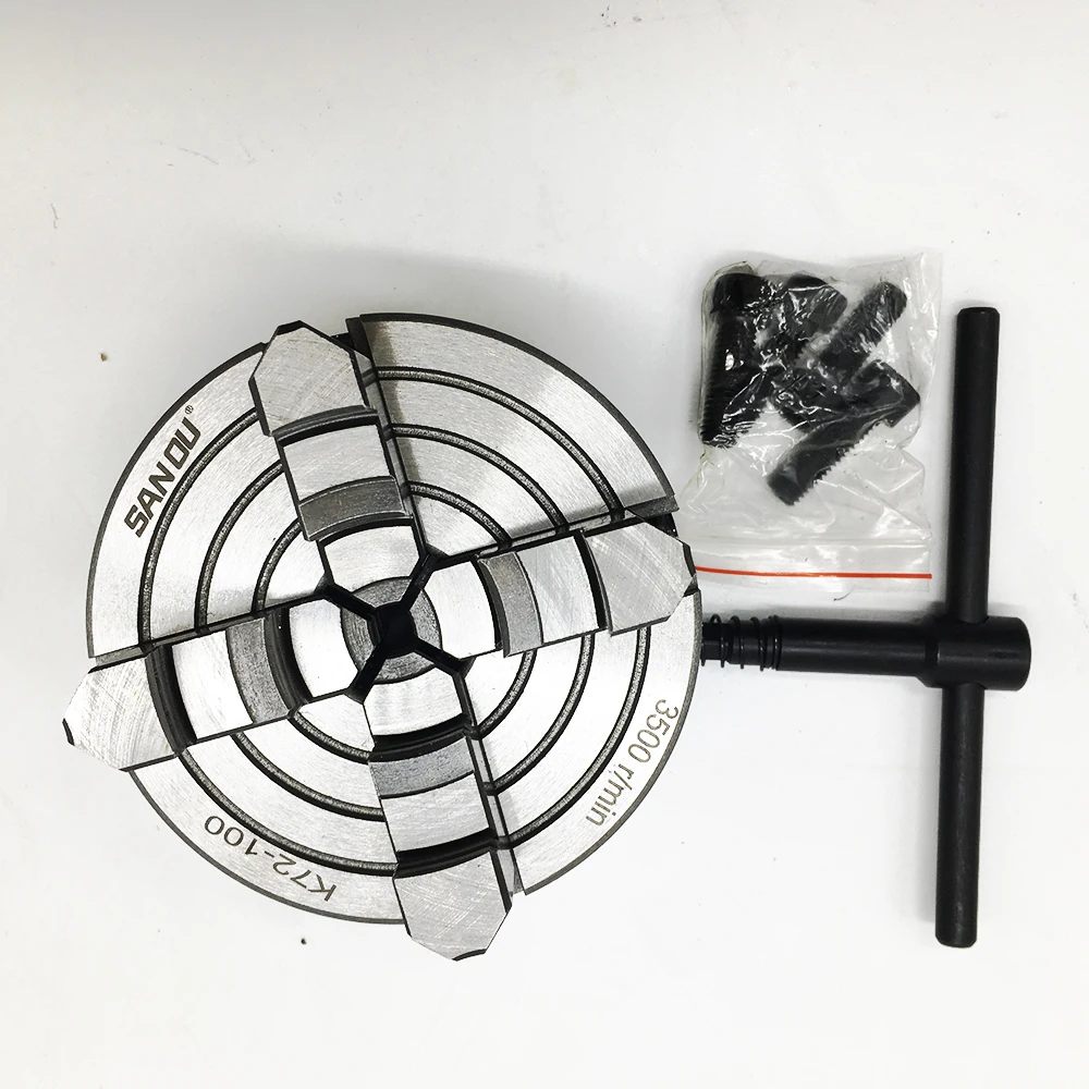 Токарный патрон SANOU K72-100, 100 мм, 4 кулачковый, независимый и Реверсивный, 4 дюйма для сверлильных фрезерная Деревообработка с ЧПУ