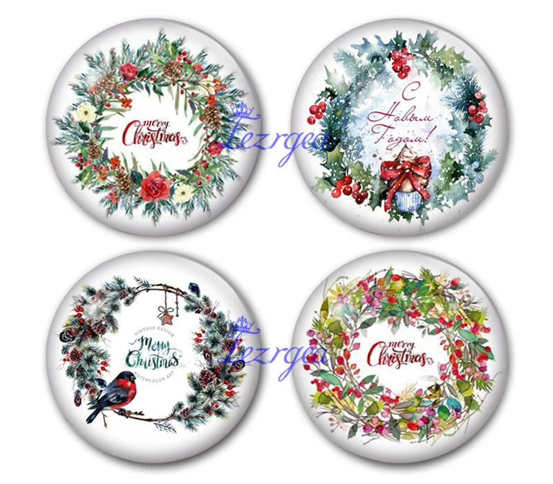 Рождественская гирлянда, стеклянный кабошон, Круглый Кабошон для фото с рождественским мотивом, демонстрационная фурнитура с плоским основанием