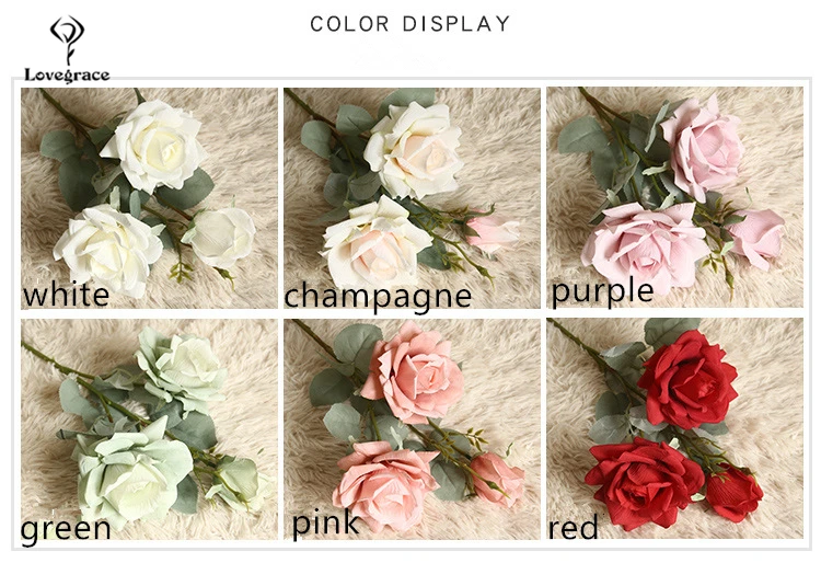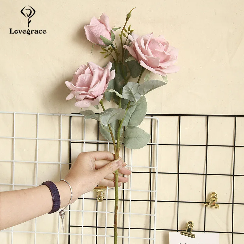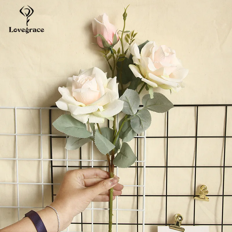 Букет роз Lovegrace, искусственные шелковые цветы с 3 головками, жасмин, Снежная роза, ветка шампанского, для украшения дома, свадьбы