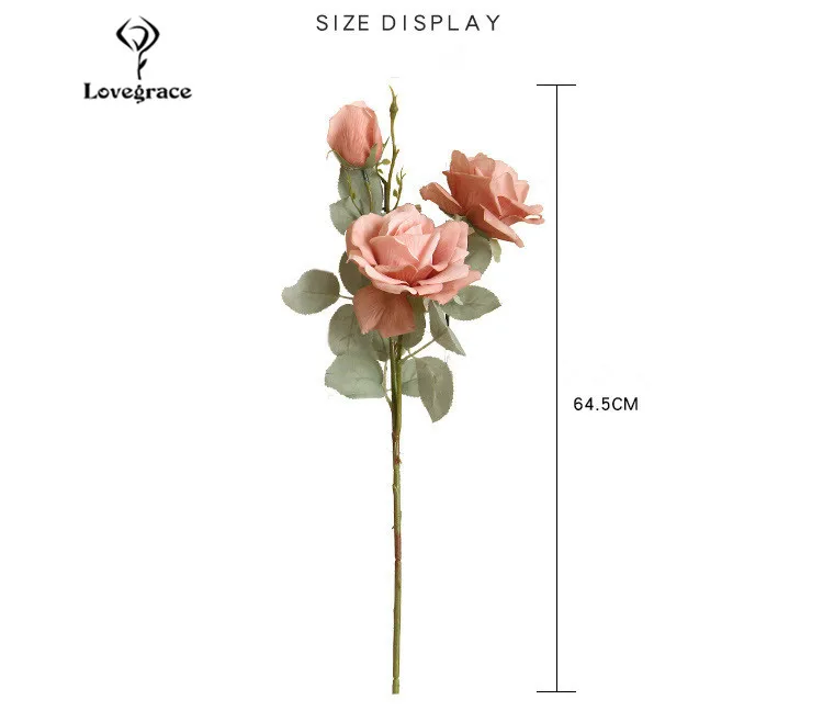 Размеры: Искусственный цветок розы Букет высотой около 64,5 см (25.3in); Цветочная головка диаметром около 11 см (4.3in); Цветочная головка высотой около 6,6 см (2.5in); C бутоном цветка диаметр около 4,5 см (1.7in); C бутоном цветка высотой около 5,8 см (2.2in); Вес около 48,6 г (0.1lb)