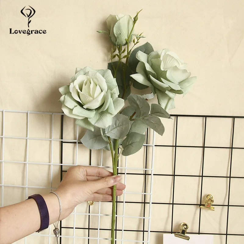 Lovegrace роза букет 3 головы шелк Жасмин снег роза искусственный цветок ветка Шампань Свадьба домашний декор поддельные цветы