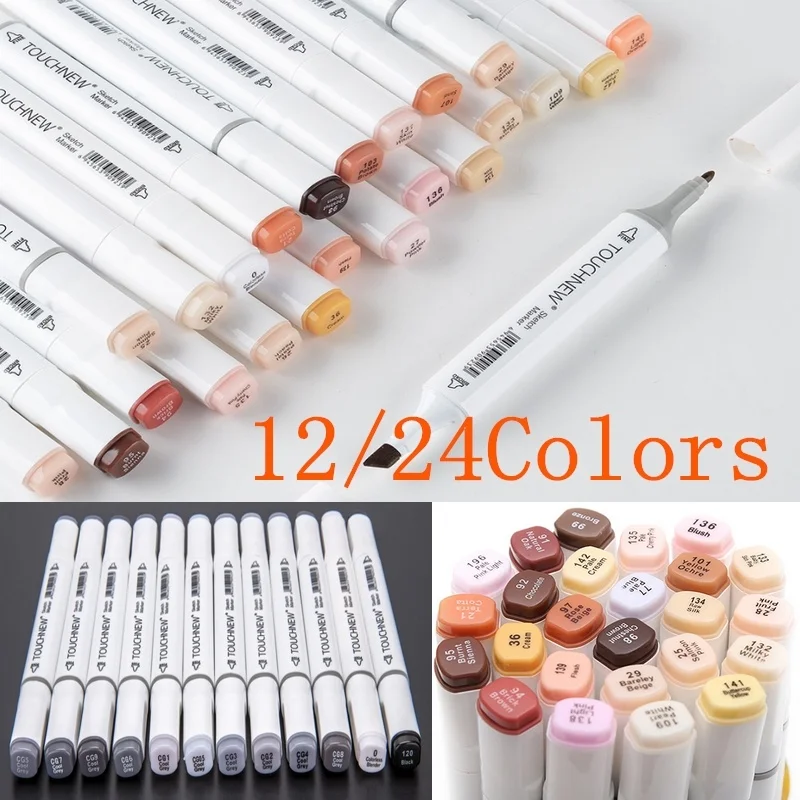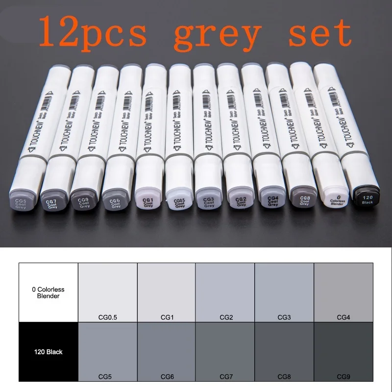 1224 цветов, маркер для тона кожи, крутой серый набор, двойная головка, эскизные маркеры, ручка для рисования, портрета, анимации, планшетов