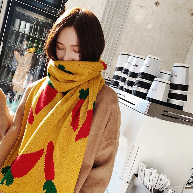 Корейский стиль Осень-зима искусственная кожа для мужчин и женщин с принтом моркови длинная Большая мягкая искусственная Высококачественная теплая шаль