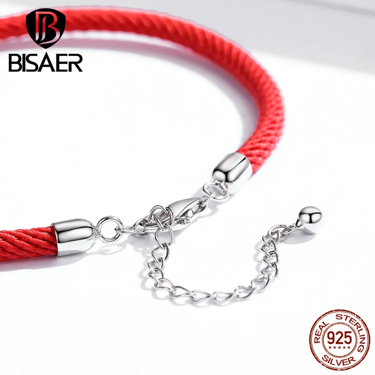 Браслеты из красной веревки BISAER 925 пробы серебро Лаки красная веревочная цепь браслеты подходят для бисера браслеты DIY серебряные ювелирные изделия ECB166