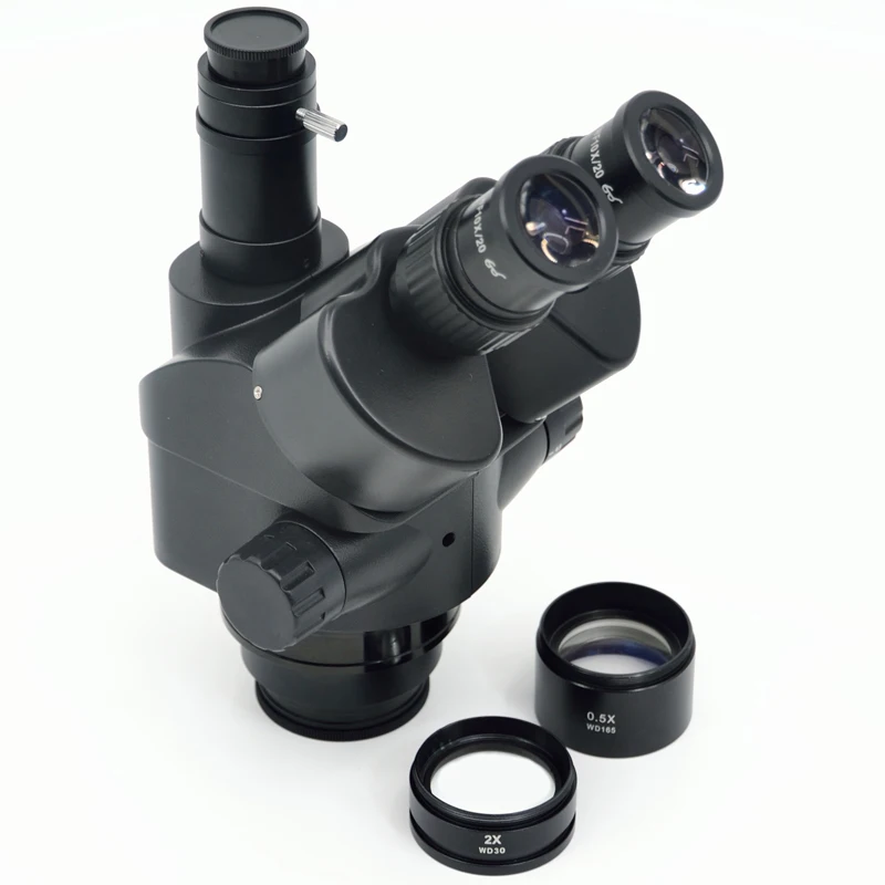 Черный микроскоп 7X-45X 3.5X-90X Simul-Focal Тринокулярный зум стерео микроскоп головка