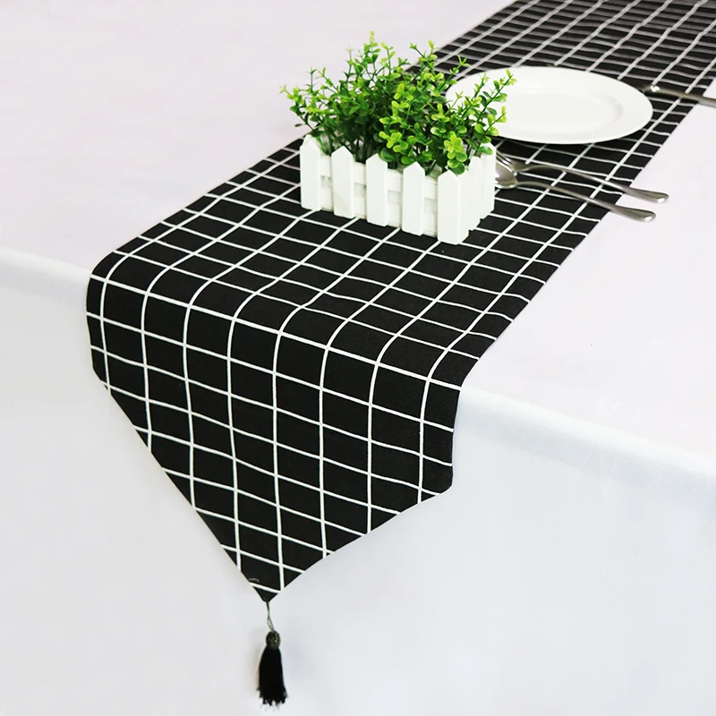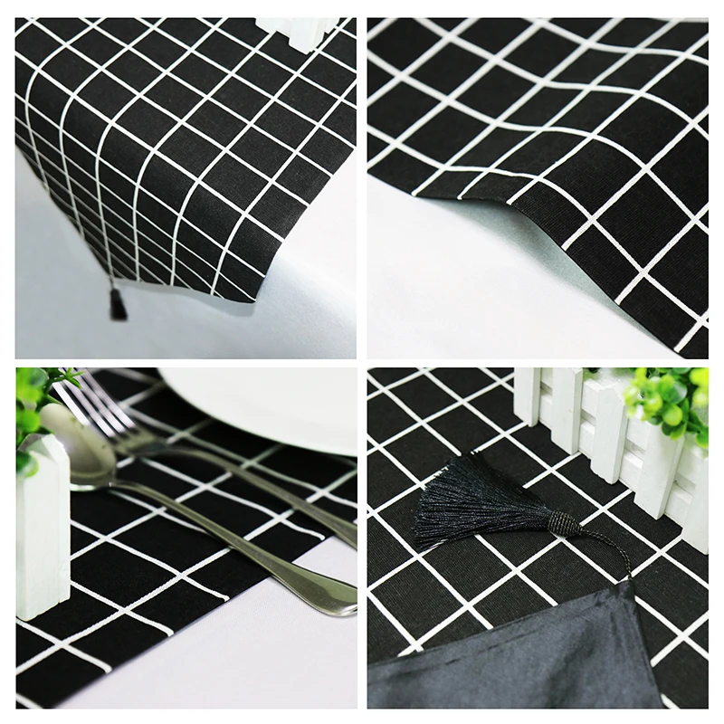 Роскошные льняные скатерти, 1 шт., украшение для дома, черная, бела...