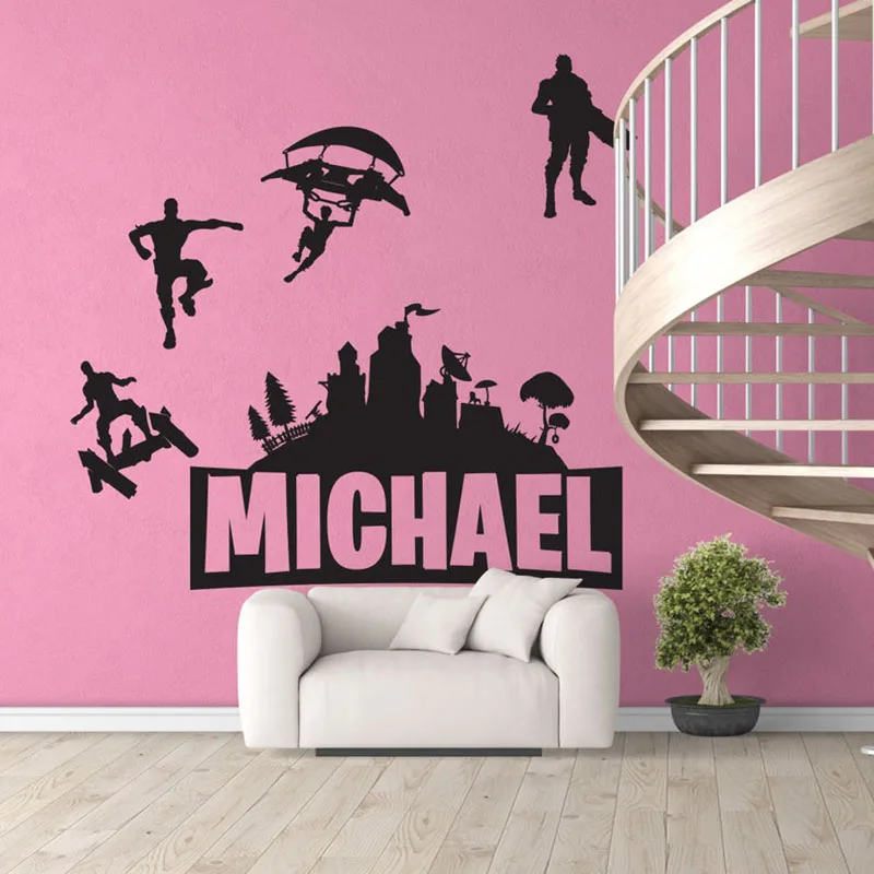 Виниловая наклейка с именем на заказ, украшение на стену для мальчика, игровой комнаты, детской комнаты, художественная Виниловая наклейка для геймеров, постеры для комнаты G852