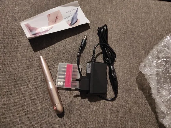 очень долгая доставка, пришло целое как в описании, фрези до конца не становятся некоторые , снимает гель лак норм, моя первая машинка для маникюра