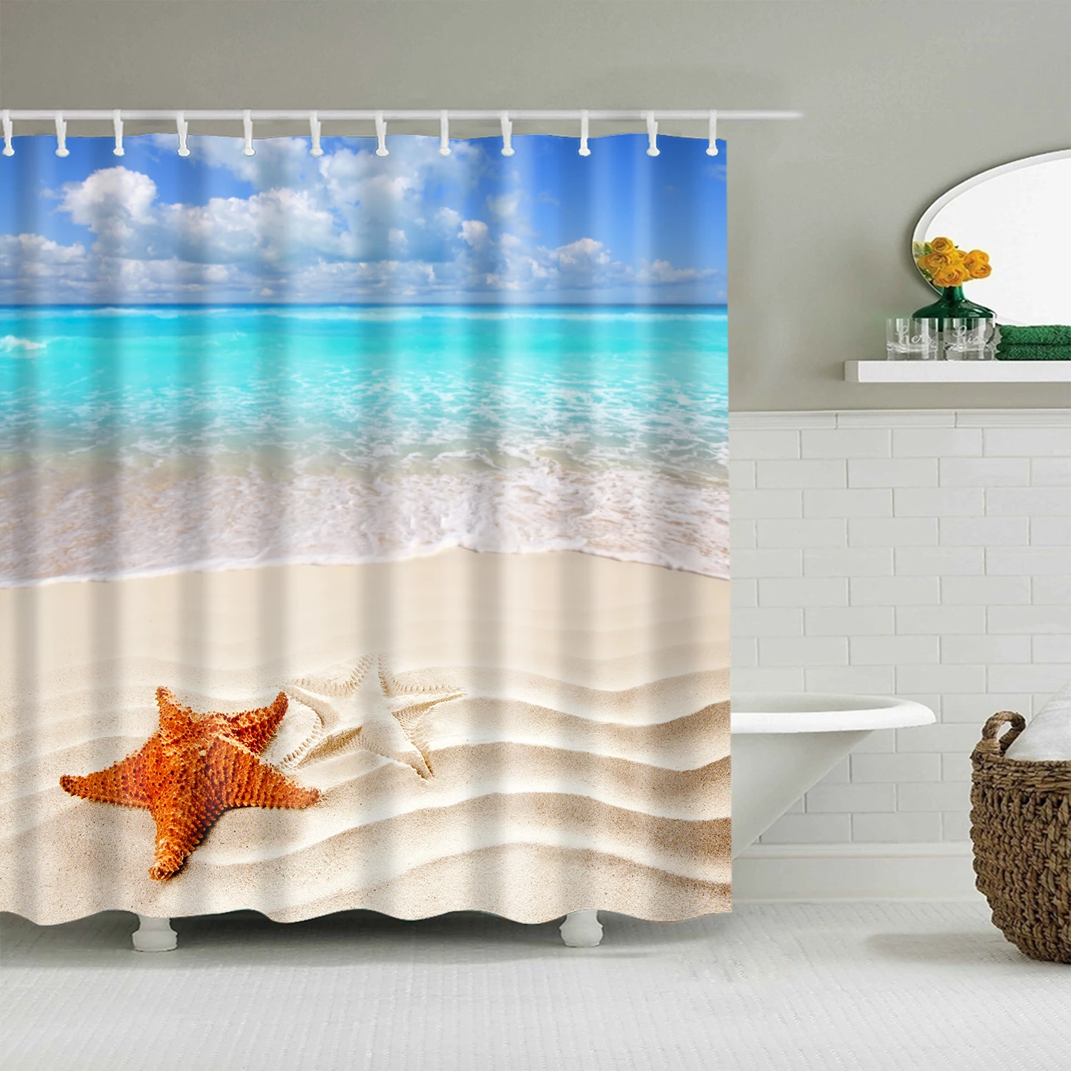 Занавеска для ванной с 3D рисунком морского пляжа, водонепроницаема...