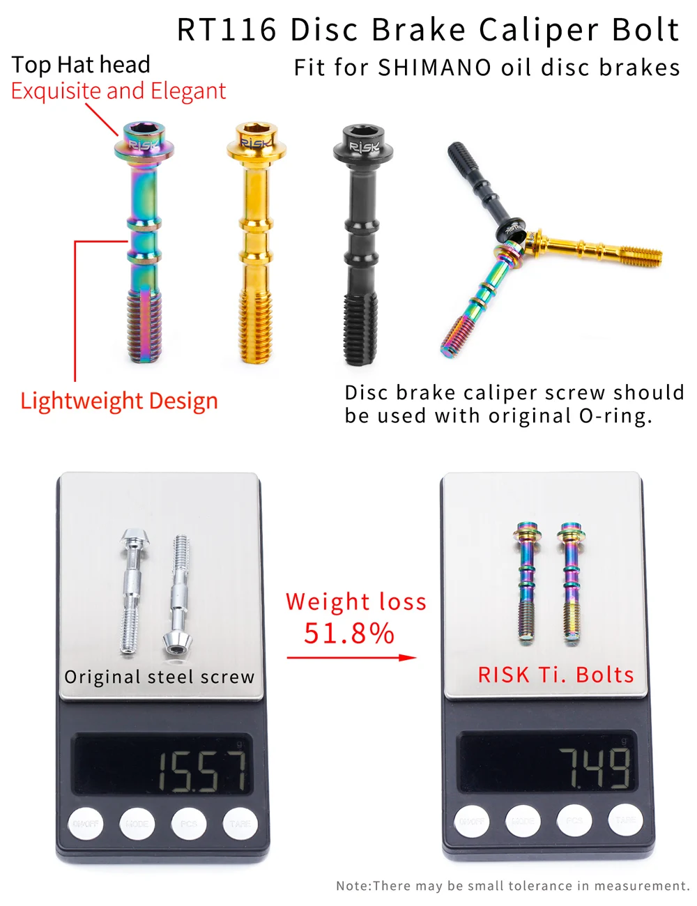 RISK Titanium велосипедный масляный дисковый тормозной зажим сверхлегкий MTB дорожный тормозной суппорт для велосипеда болты для SHIMANO масляный диск все серии масляный трубчатый винт
