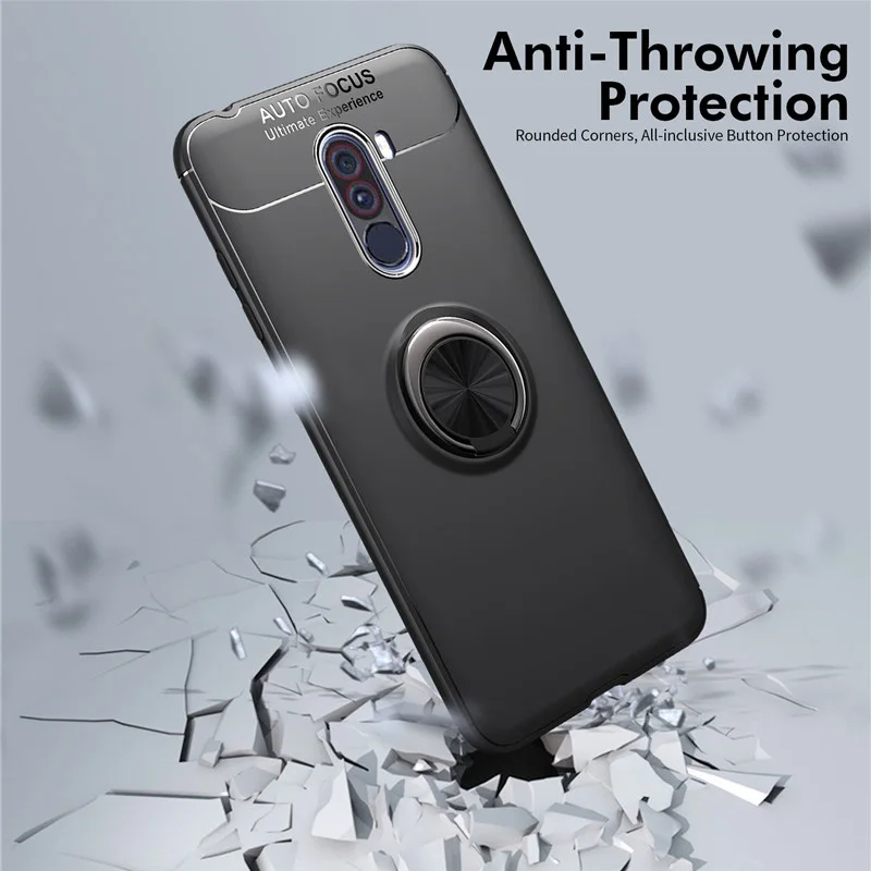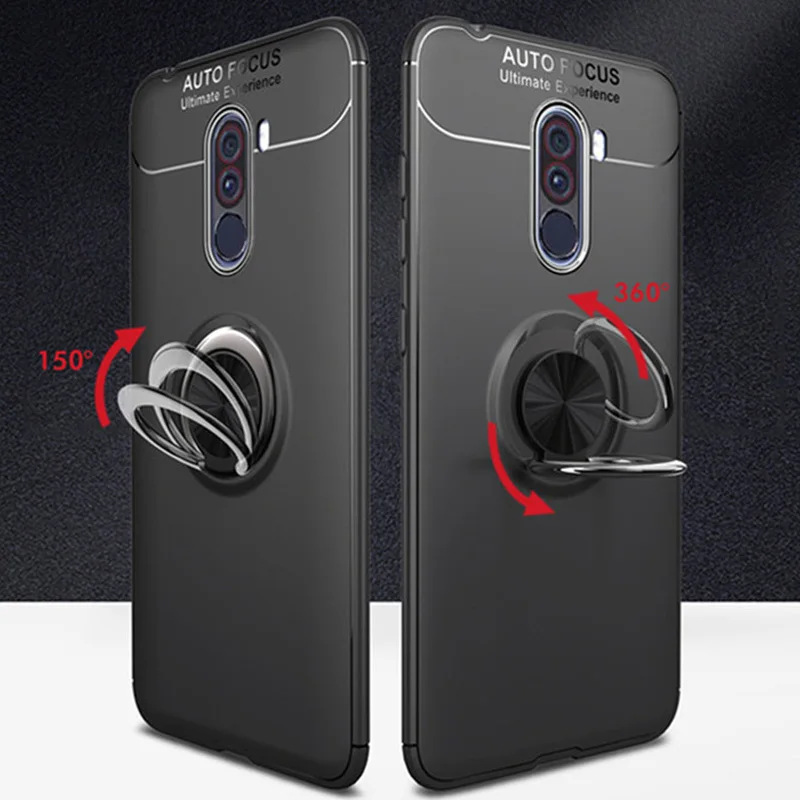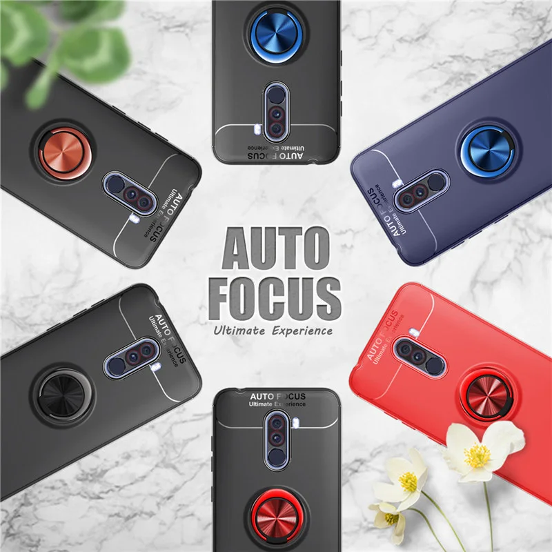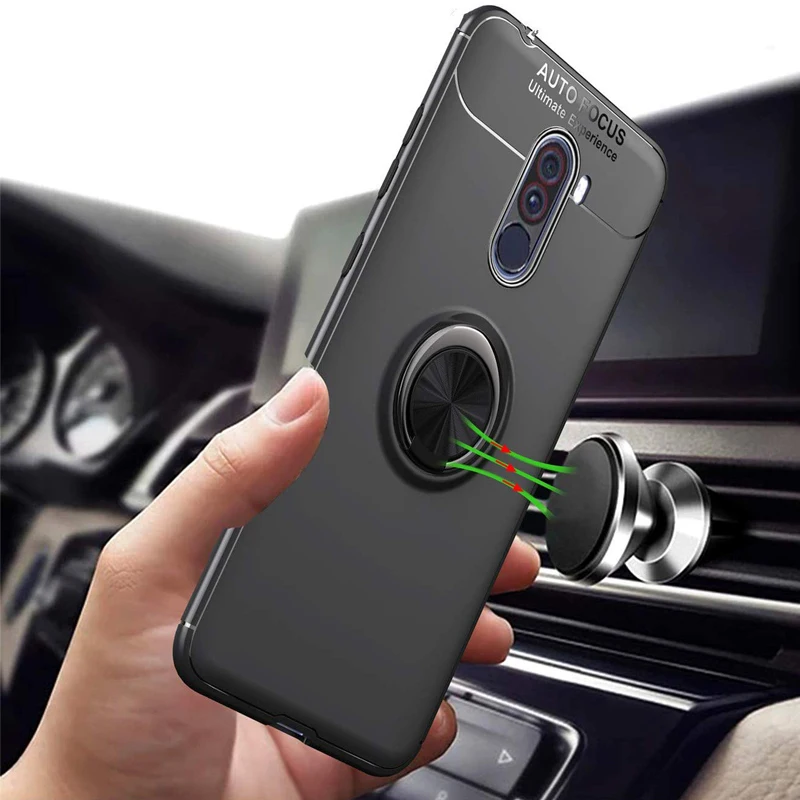 Автомобильный чехол с магнитным кольцом для задней крышки Pocophon F1 Xiaomi Pocophone F1 силиконовые противоударные бампер чехлы poco f1 poco f 1 чехол