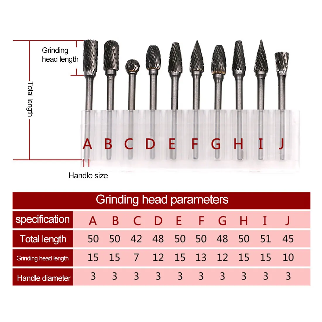 3. Длина шлифовальной головки: 15 мм/15 мм/7 мм/12 мм/15 мм/13 мм/12 мм/15 мм/10 мм