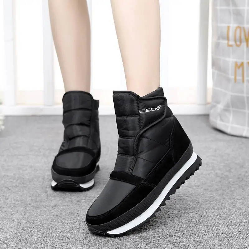 Однотонные водонепроницаемые ботинки на платформе, ботильоны с ремешком, теплые плюшевые зимние женские ботинки, Зимние ботильоны 2021, женская обувь