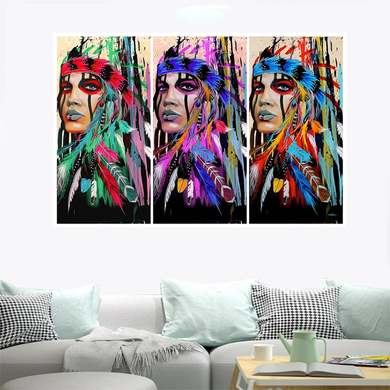 Алмазная живопись с портретом американского происхождения красочная шапка с перьями полная вышивка крестиком наклейка мозаика вышивка домашний Декор подарок