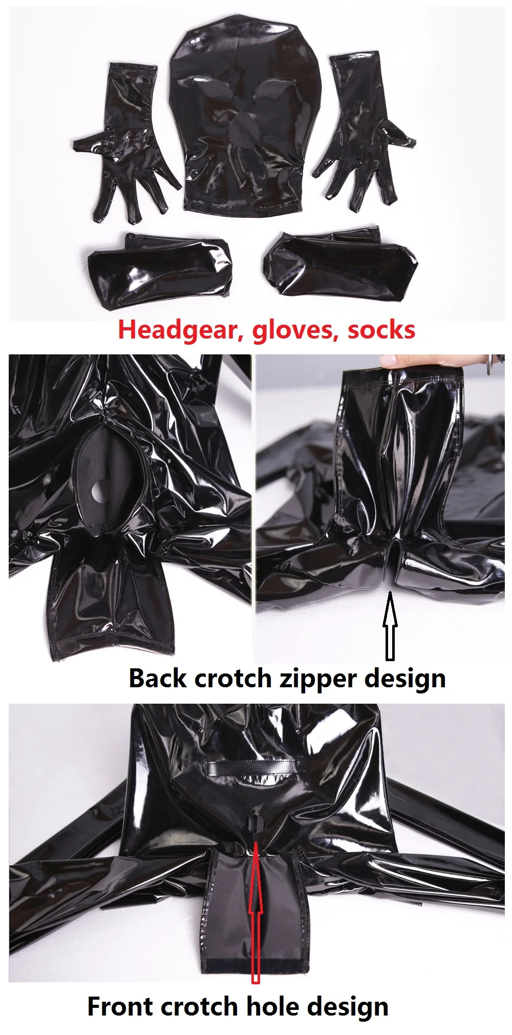 Сексуальное блестящее боди для мужчин, полное тело, латексный водонепроницаемый, с U-образным выпуклым мешочком, комбинезон сексуальное женское нижнее белье обтягивающая одежда для геев с перчатками M115