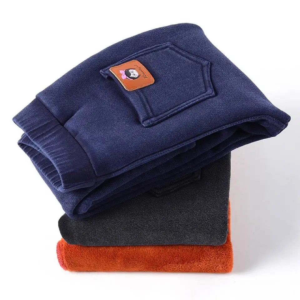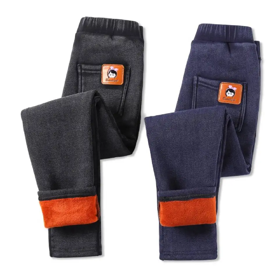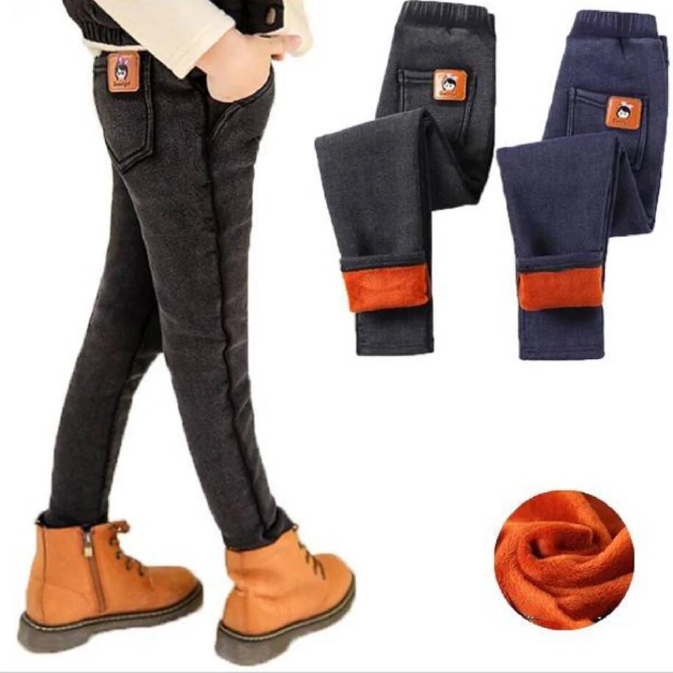 Джинсы для девочек-подростков, утепленные, синего и черного цветов, с эластичным поясом, 2019