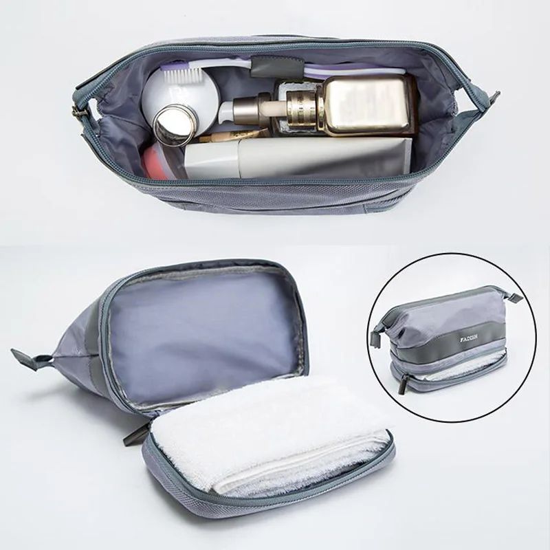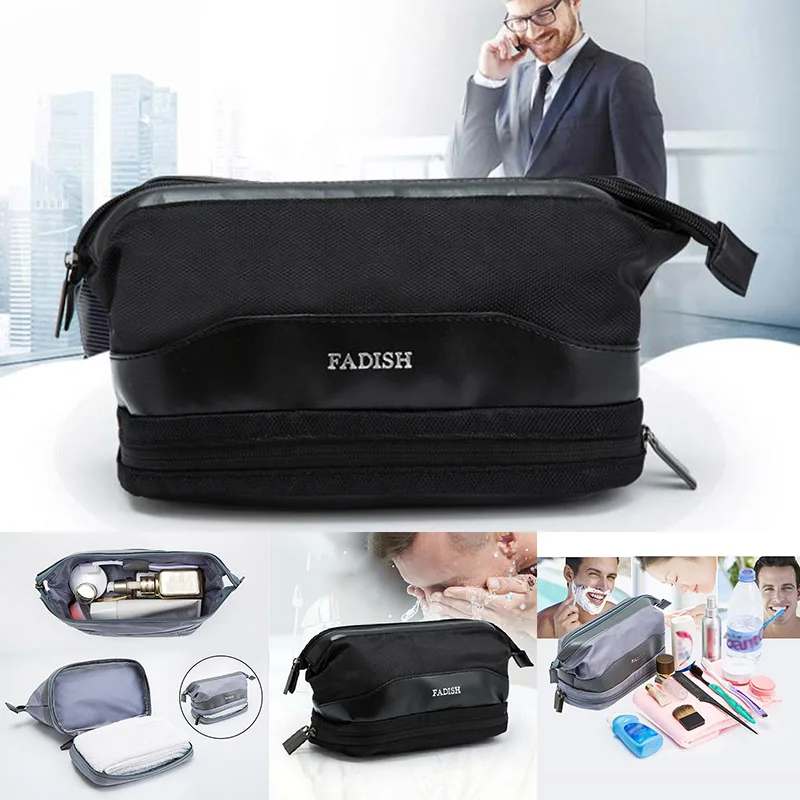 Унисекс двухслойная сумка для туалетных принадлежностей с карманом на молнии дорожная сумка для мытья макияжа Органайзер для хранения косметики красивый чехол для мужчин