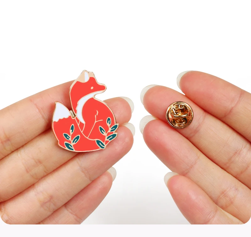 Броши в виде животных Лисичка Эмаль Булавка шапка рюкзак аксессуары значки пользовательский подарок для детей милые ювелирные изделия Кнопка влюбленных булавки 2 цвета