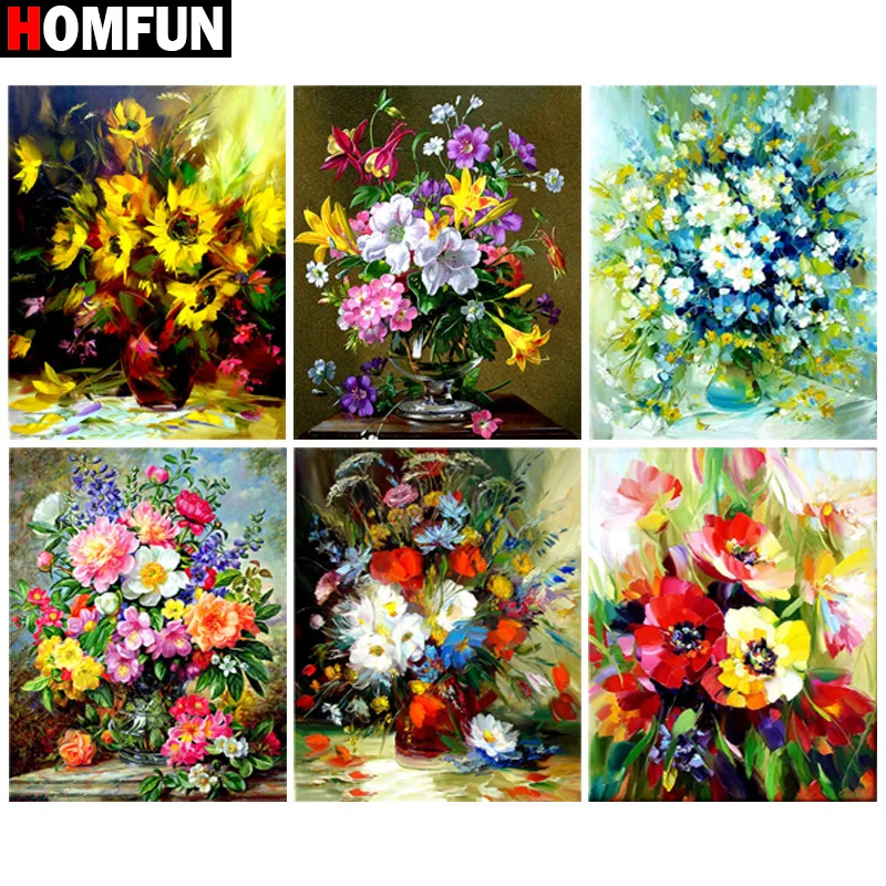 Алмазная живопись HOMFUN цветной цветочный пейзаж, полное квадратноеКруглое украшение для стен, инкрустированная смолой, вышивка ручной работы, вышивка крестиком