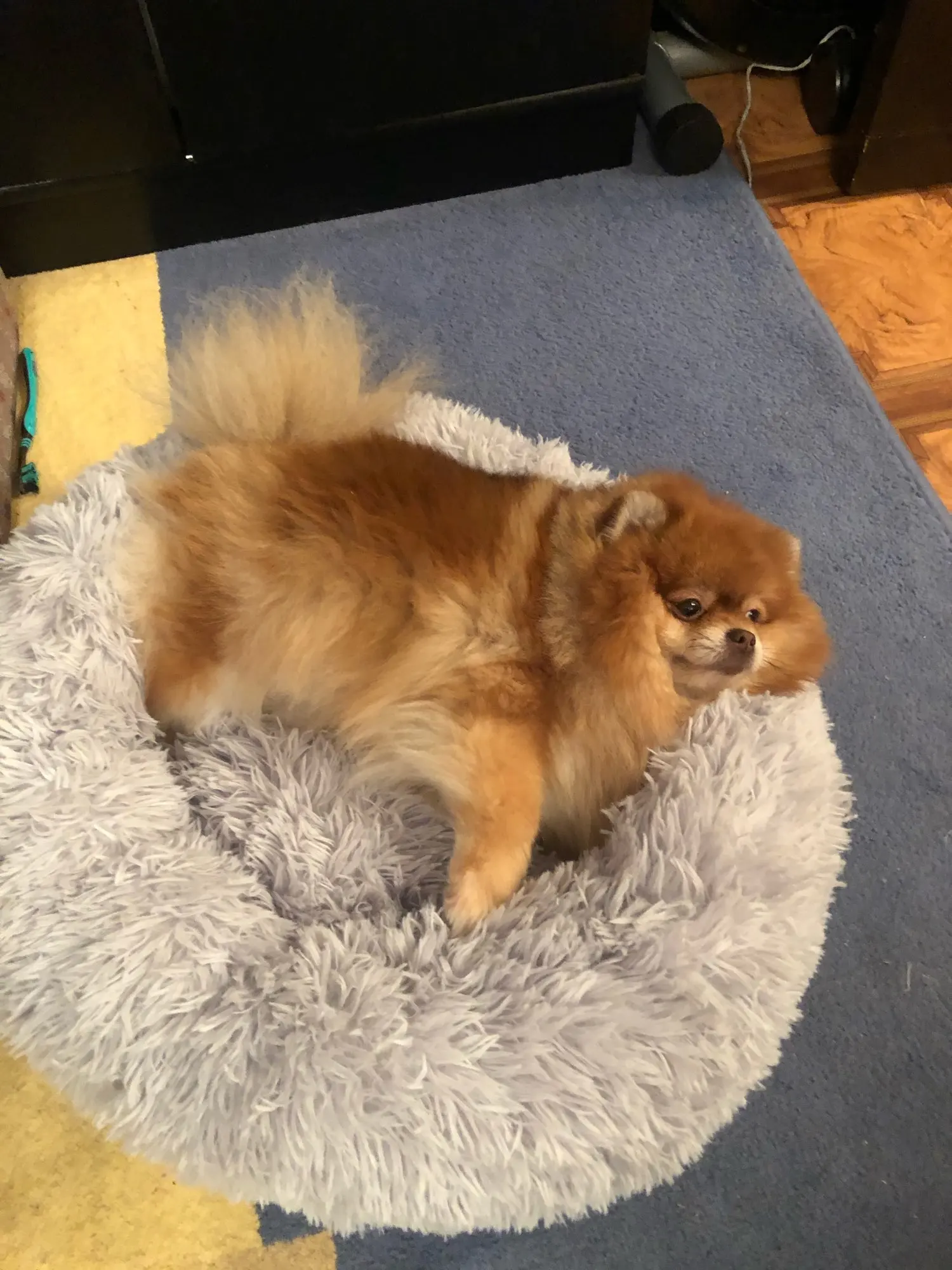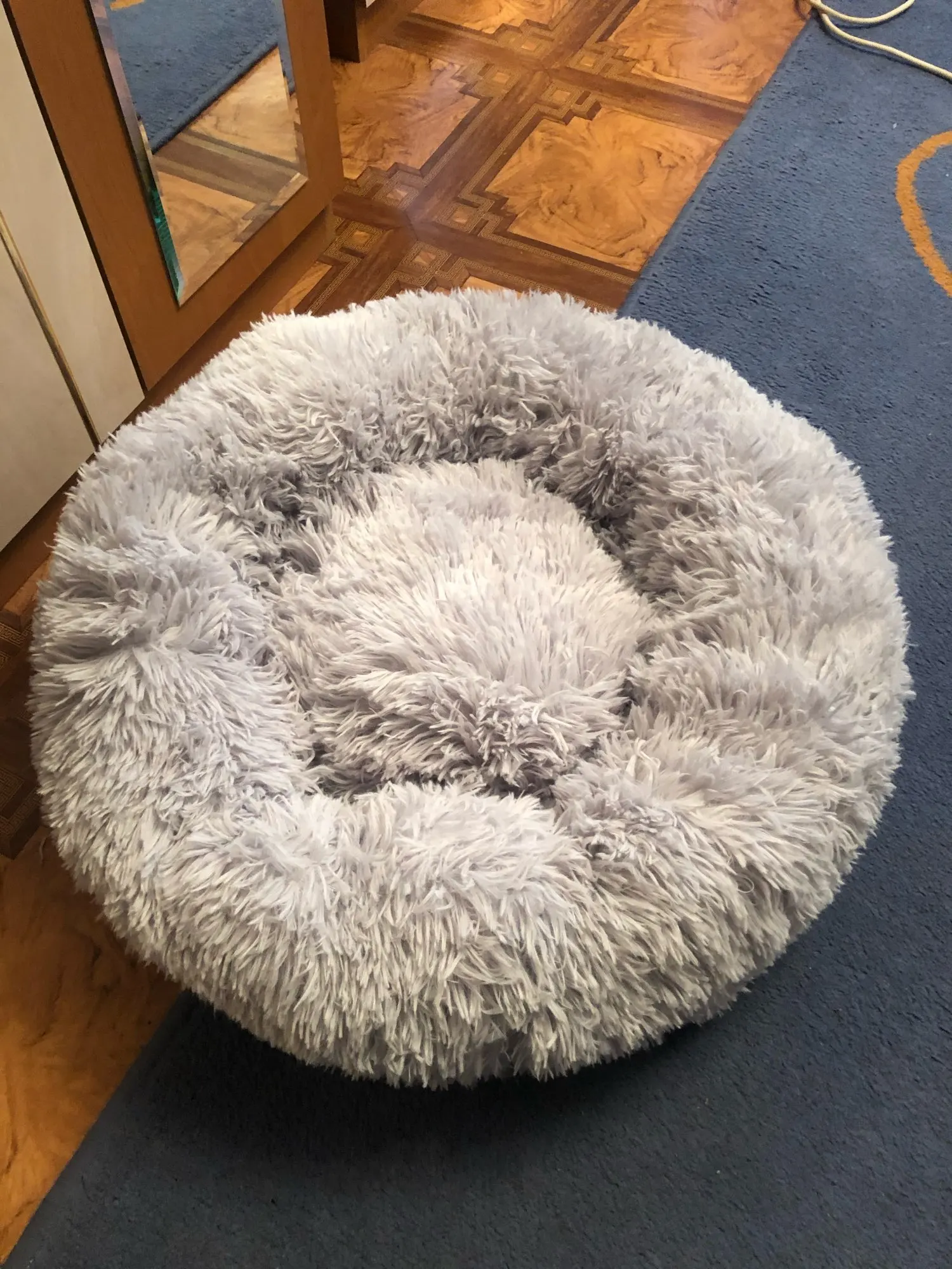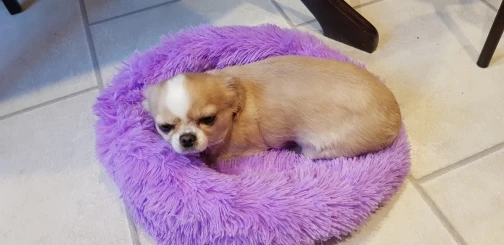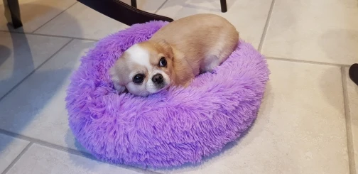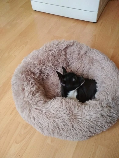 отличная лежанка! мягкая, пушистая. доставили за 14 дней с момента оплаты. однозначно рекомендую. 80 см. для мопса 12 кг. самое то