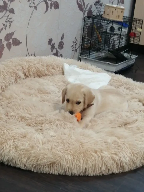 замечательная лежанка. Довольно большая. Брали для щенка французского бульдога. 70см, но можно было бы и 60см взять. Тут две взрослые собаки поместятся)) а пока щенок к нам едет дочь легла на лежанку Цена отличная, дешевле чем на Вайлдберриз. Самое замечательное, это доставка. За неделю , да ещё курьером домой в воскресенье. Спасибо , мы так довольны!!!