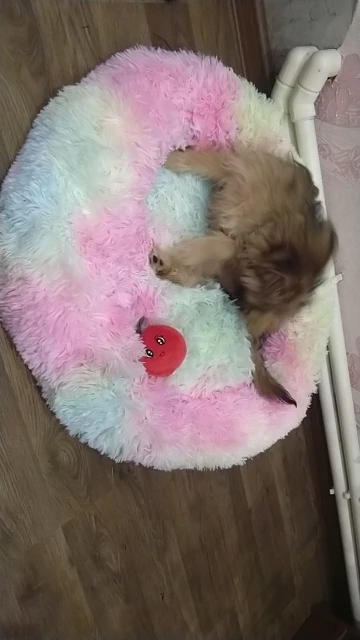 заказала лежанку разноцветную,но тут же подумала и попросила продавца поменять цвет,так как коричневый больше подходит к интерьеру комнаты,на что продавец ответил полным игнором,даже не досужился ответить и цвет естественно не поменял,огорчает такое отношение продавцов и шла очень долго,полтора месяца.а сама лежанка мягкая,большая,яркая,красивая.собака оценила и сразу легла в нее,видать понравилась,правда немного мятая,надеюсь быстро форму предаст,дно прям мягкое,набивка равномерно наложена,что не скажешь про спинку,не знаю как назвать))))спинка, обруч)))))где норм набивки,где много,а где вообще мало,плохо видать распределили ее по кругу,а так супер лежанка,надеюсь,что будет спать моя собака в ней,а не грызть,а то уже была попытка ее покусать )))))